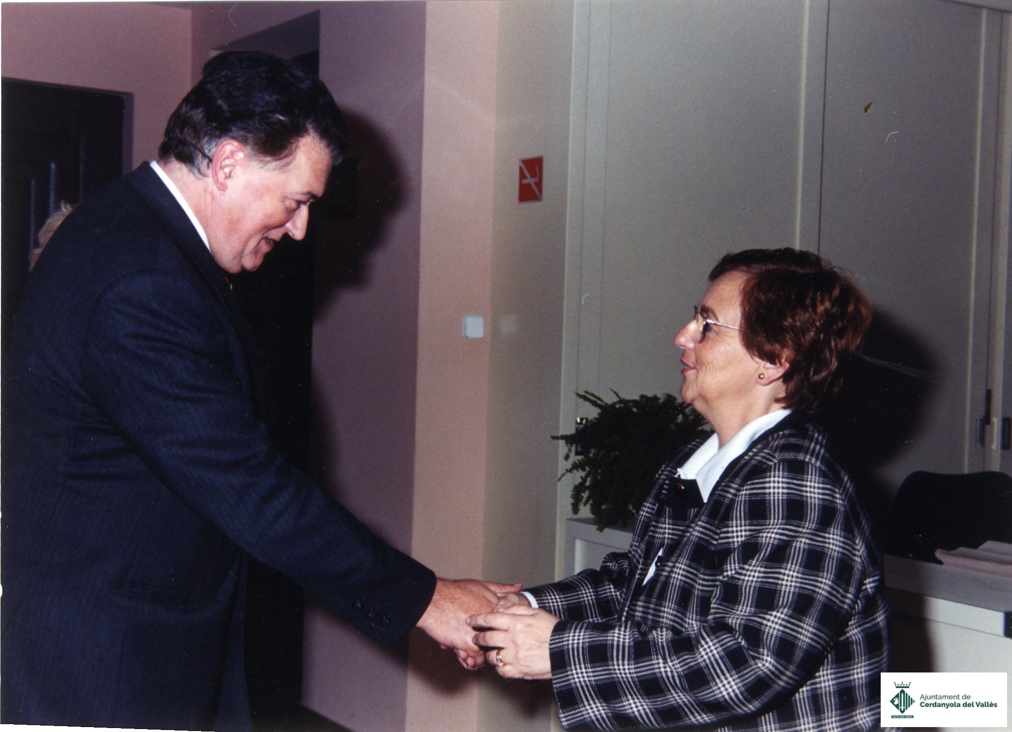 Visita oficial i acte de signatura del Llibre d'Honor de l'Ajuntament de Cerdanyola del Vallès d' Antoni Comas i Baldellou, diputat per Convergència Democràtica de Catalunya al Parlament de Catalunya i Conseller de Benestar Social de la Generalitat de Catalunya, el novembre de 1997