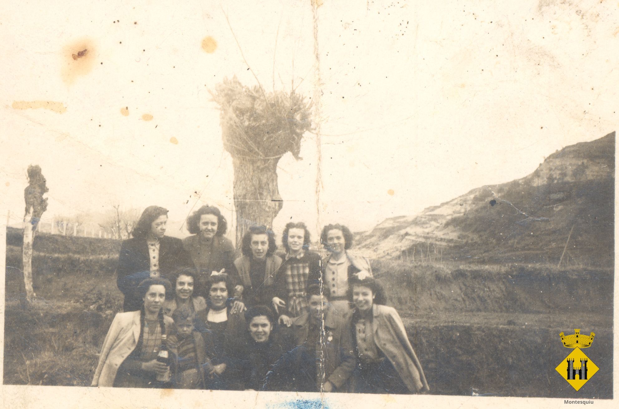 Retrat d'un grup de noies i un infant en una excursió