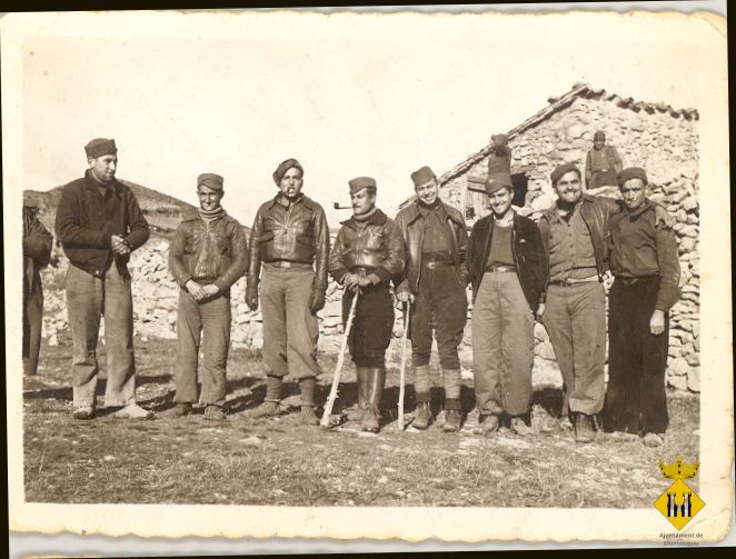 Grup de soldats, davant d'una casa a Santa Eulàlia la Major, a Osca, es feien anomenar la peña Los Tranquilos