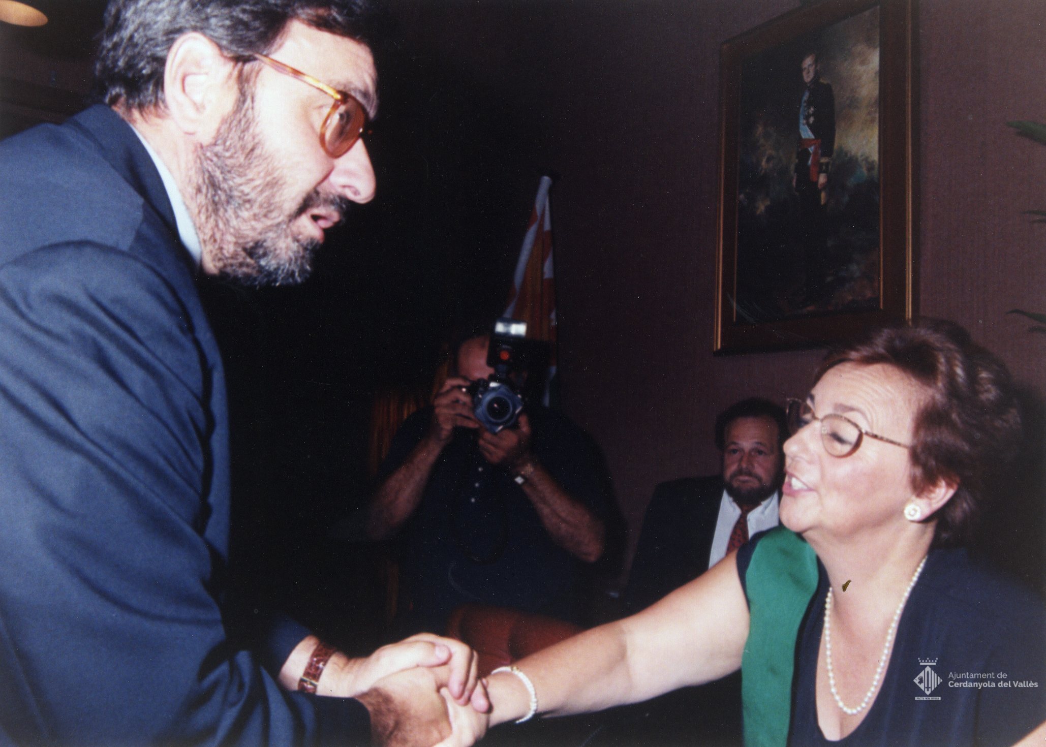 Relleu d'Alcaldia a l'Ajuntament de Cerdanyola del Vallès entre Celestino Sánchez González i Cristina Real Masdeu el 1997