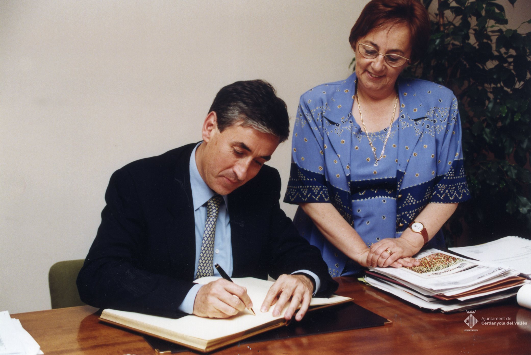 Visita oficial i signatura del Llibre d'Honor de l'Ajuntament de Cerdanyola del Vallès de Ramón Jáuregui Atondo, polític basc i dirigent del Partit Socialista d'Euskadi-Euskadiko Ezkerra i del Partit Socialista Obrer Espanyol, el juny de 1998