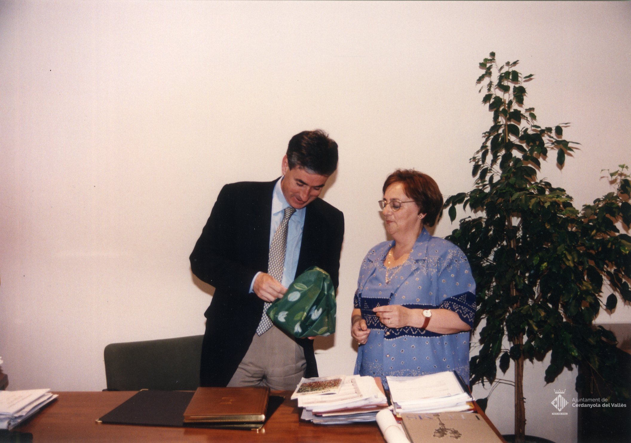 Visita oficial i signatura del Llibre d'Honor de l'Ajuntament de Cerdanyola del Vallès de Ramón Jáuregui Atondo, polític basc i dirigent del Partit Socialista d'Euskadi-Euskadiko Ezkerra i del Partit Socialista Obrer Espanyol, el juny de 1998