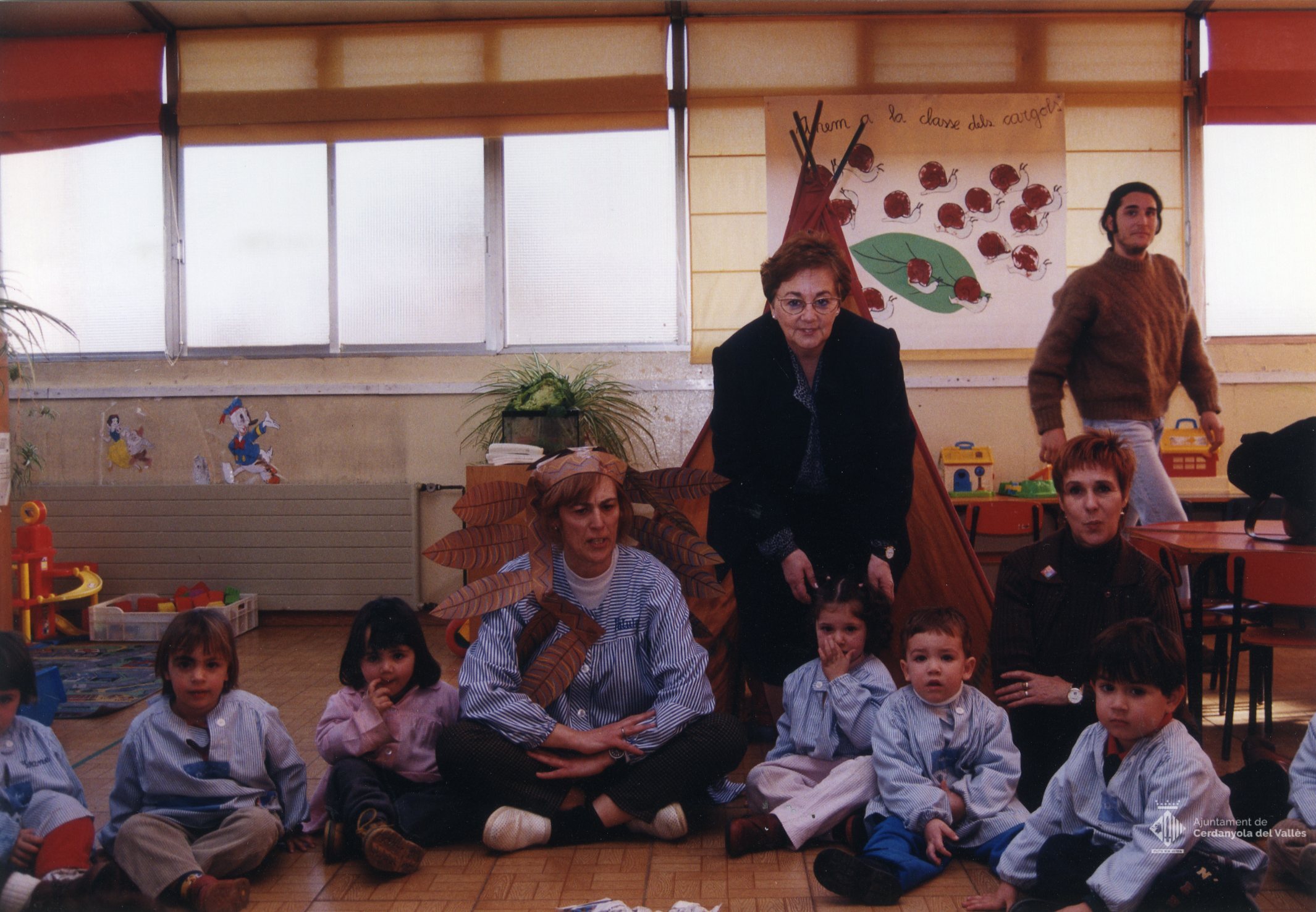 L'alcaldessa de Cerdanyola del Vallès, Cristina Real Masdeu, visita escoles infantils del municipi el febrer de 1999
