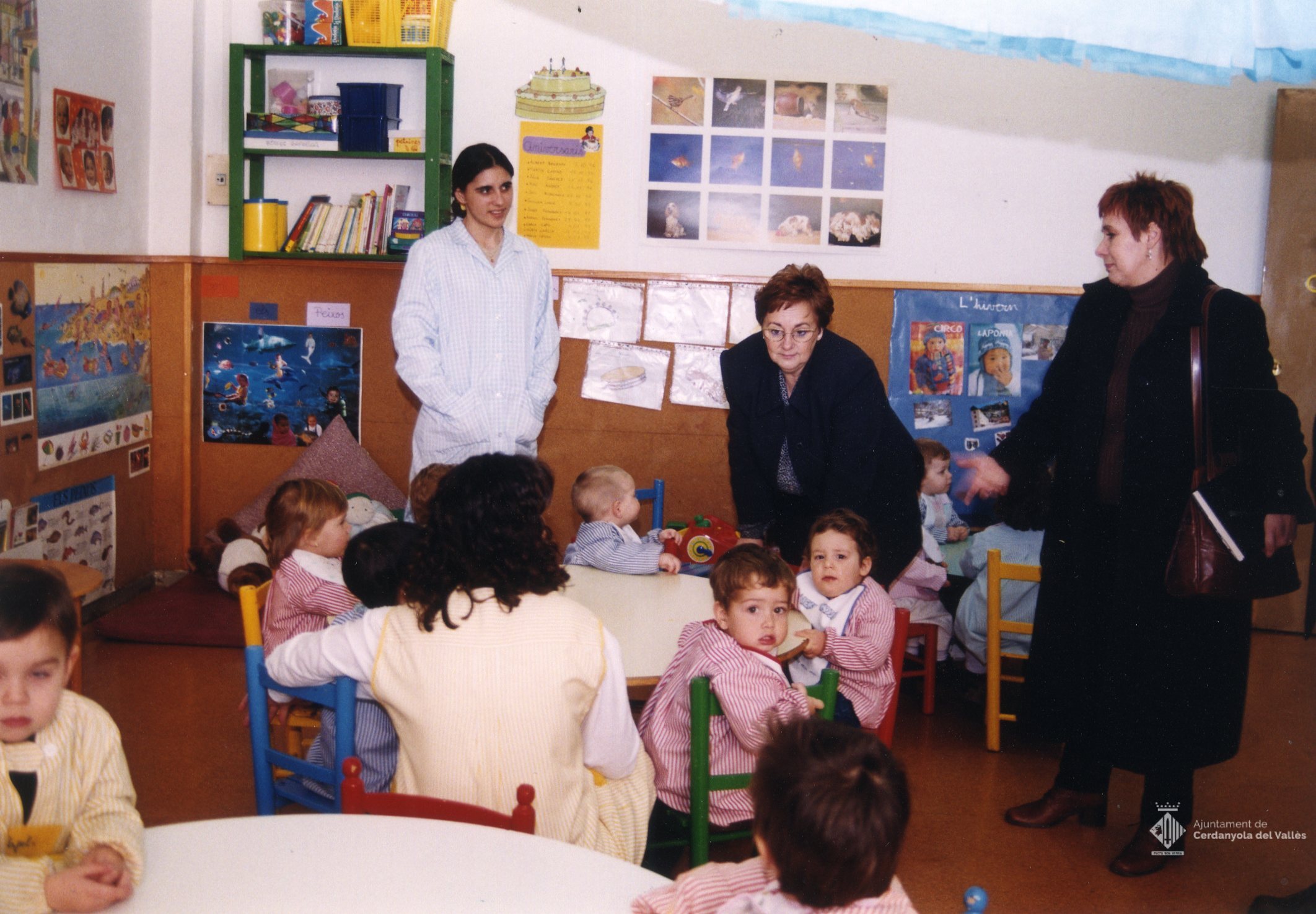 L'alcaldessa de Cerdanyola del Vallès, Cristina Real Masdeu, visita escoles infantils del municipi el febrer de 1999
