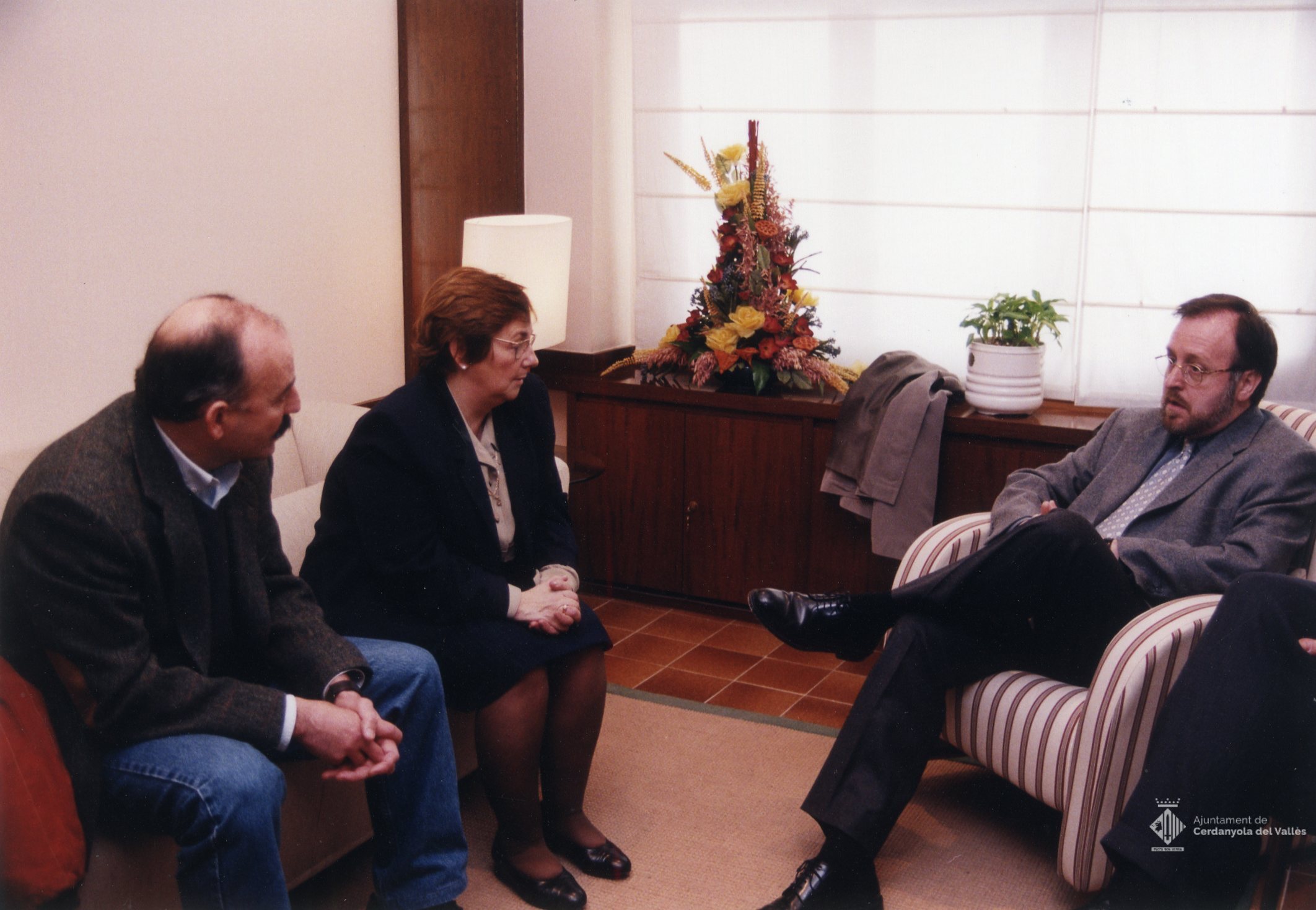Àngel Colom i Colom, senador al Senat d'Espanya pel Partit per la Independència, visita l'Ajuntament de Cerdanyola del Vallès de la mà de l'alcaldessa Cristina Real Masdeu el març de 1999
