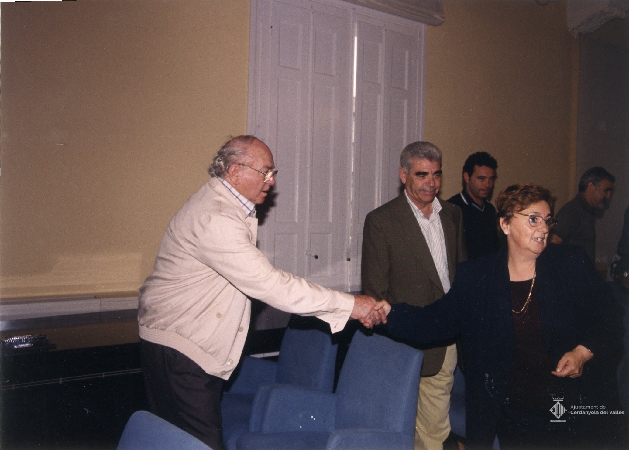 Visita oficial i acte de signatura del Llibre d'Honor de l'Ajuntament de Cerdanyola del Vallès de veterans del Reial Madrid Club de Futbol de la mà de l'alcaldessa Cristina Real Masdeu el juny de 1999