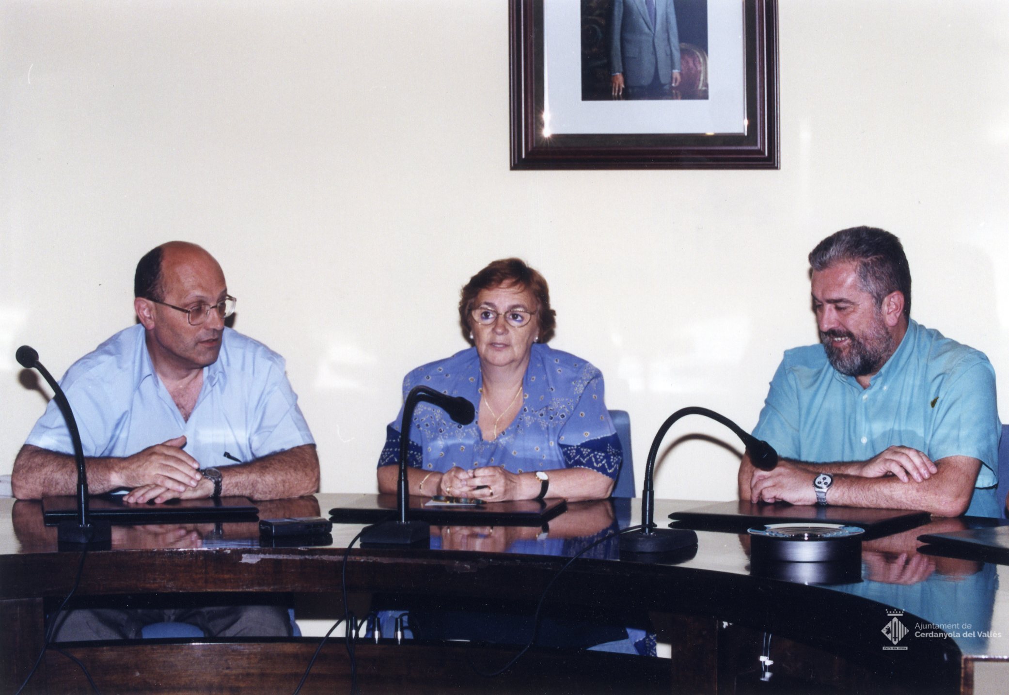 Els alcaldes de Cerdanyola del Vallès, Ripollet i Montcada i Reixac es reuneixen a l'Ajuntament de Cerdanyola del Vallès el juliol de 1999