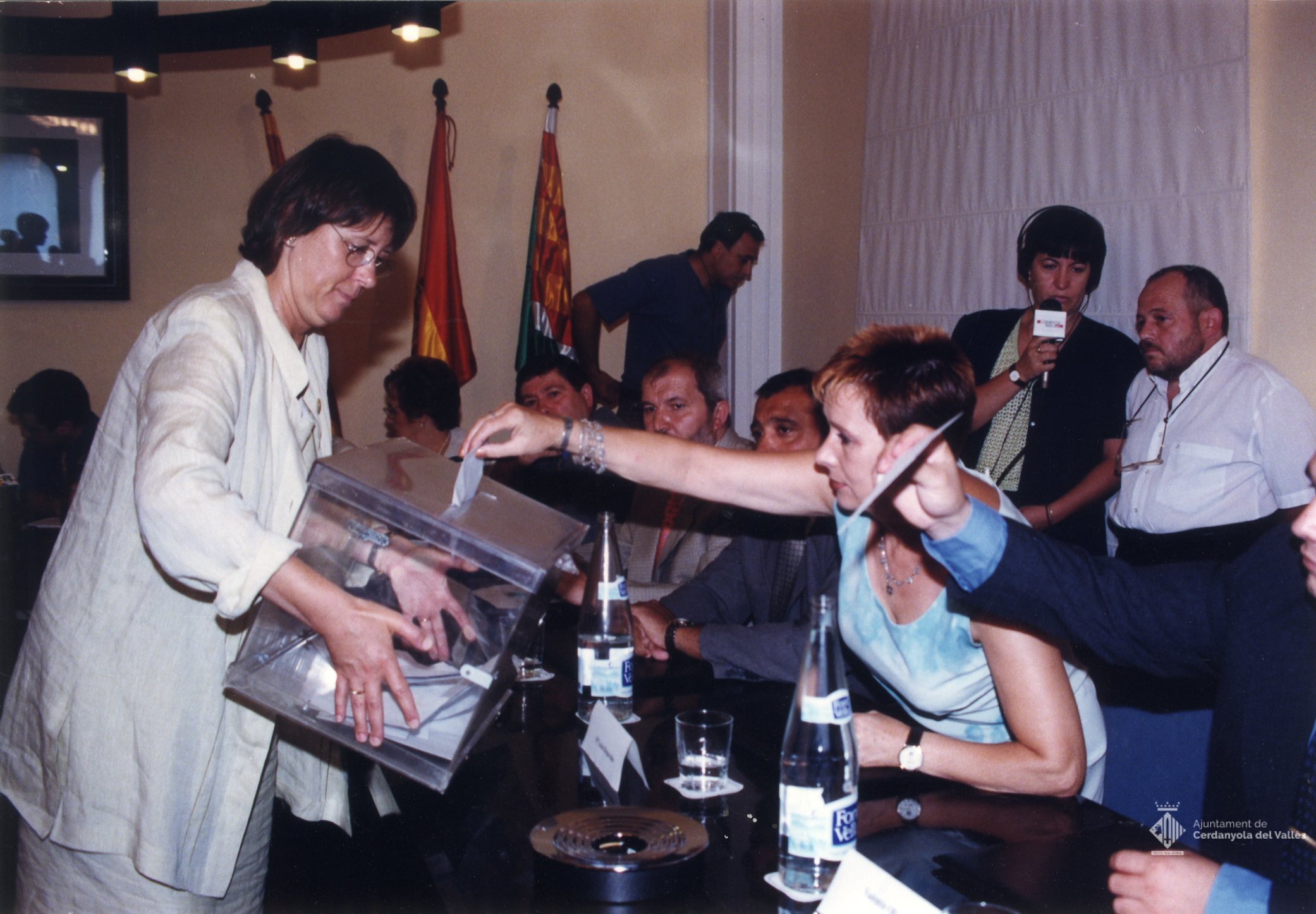 Votació prèvia al nomenament dels membres del govern municipal a la Sala del Ple de l'Ajuntament de Cerdanyola del Vallès el 3 de juliol de 1999 donant inici al mandat socialista de 1999-2003