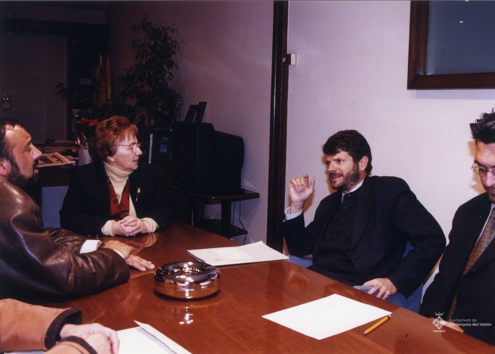 Albert Batlle i Bastardas, regidor d'Esports a l'Ajuntament de Barcelona i diputat provincial de Barcelona pel PSC, visita l'Ajuntament de Cerdanyola del Vallès de la mà de l'alcaldessa Cristina Real Masdeu el gener de 2000