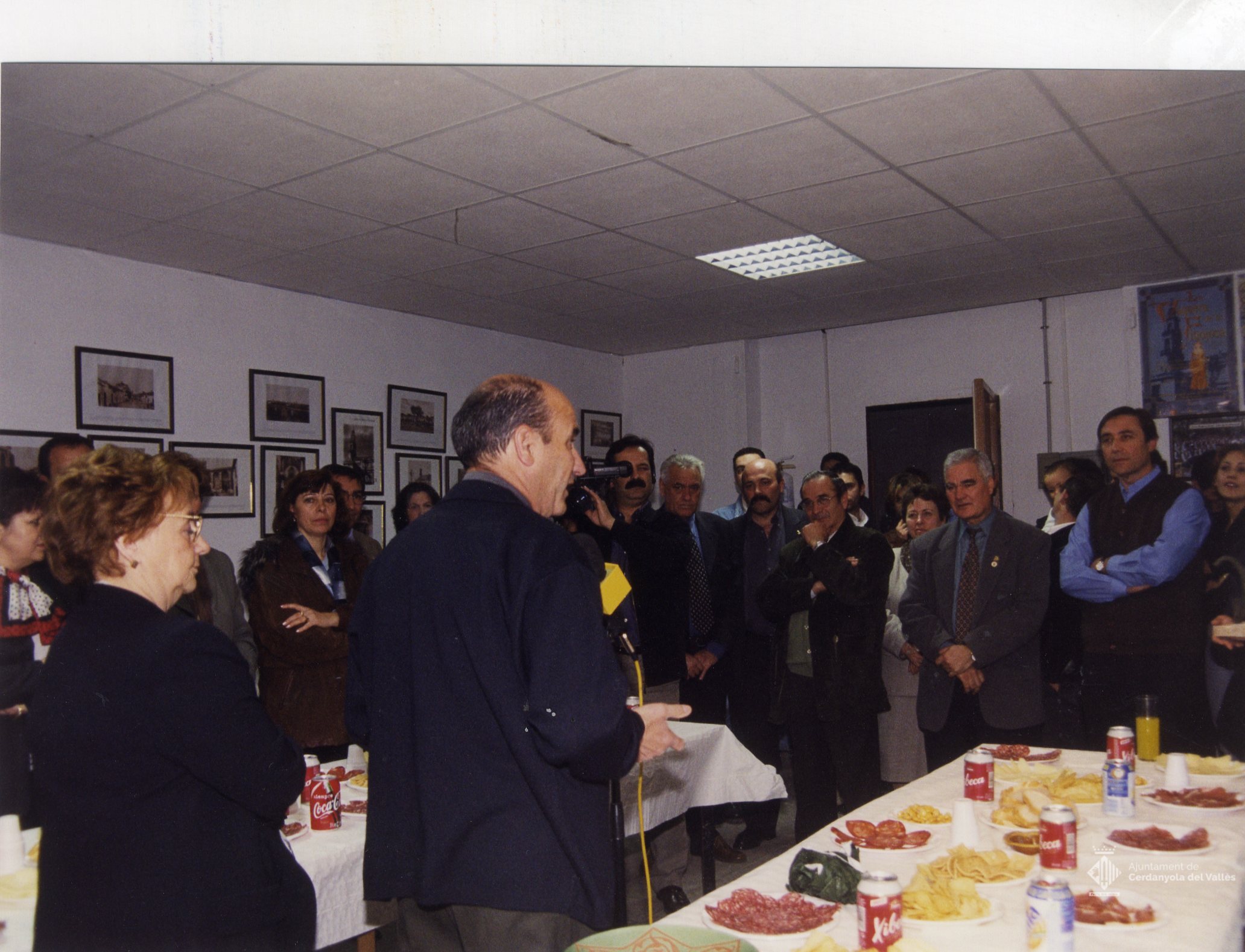 L'Alcalde d'Hinojosa del Duque, Antonio Ruiz Sánchez, visita la seu de la Hermandad Filial de Nuestra Señora de la Antigua de Cerdanyola del Vallès de la mà de l'alcaldessa Cristina Real Masdeu en motius de la celebració de la tradicional romeria l'abril de 2000
