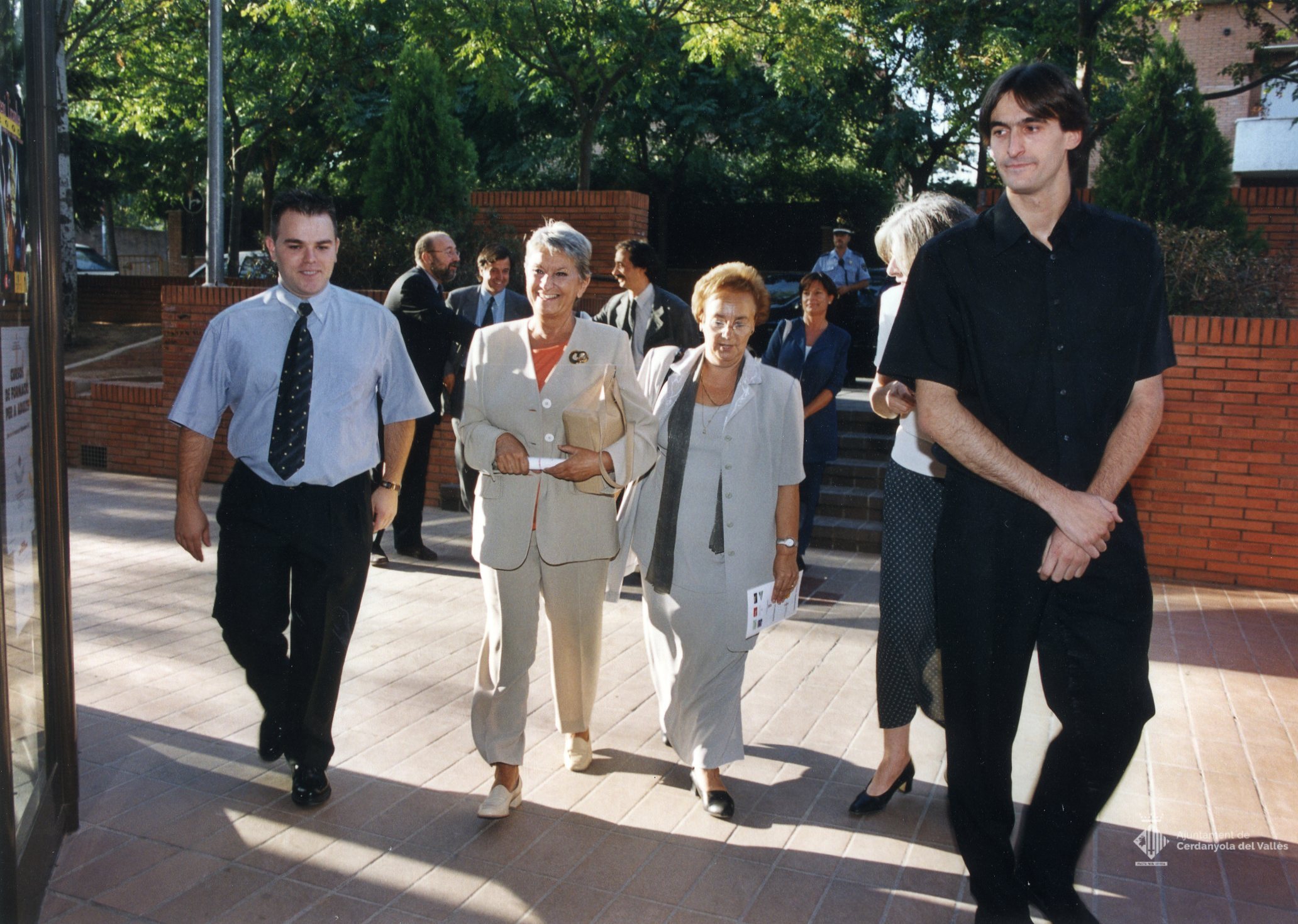 L'alcaldessa Cristina Real Masdeu participa de la presentació del 13è dia mundial de la sordera a l'Ateneu de Cerdanyola del Vallès l'agost de 2000 acompanyada de la Consellera d'Ensenyament Carme Laura Gil i Miró