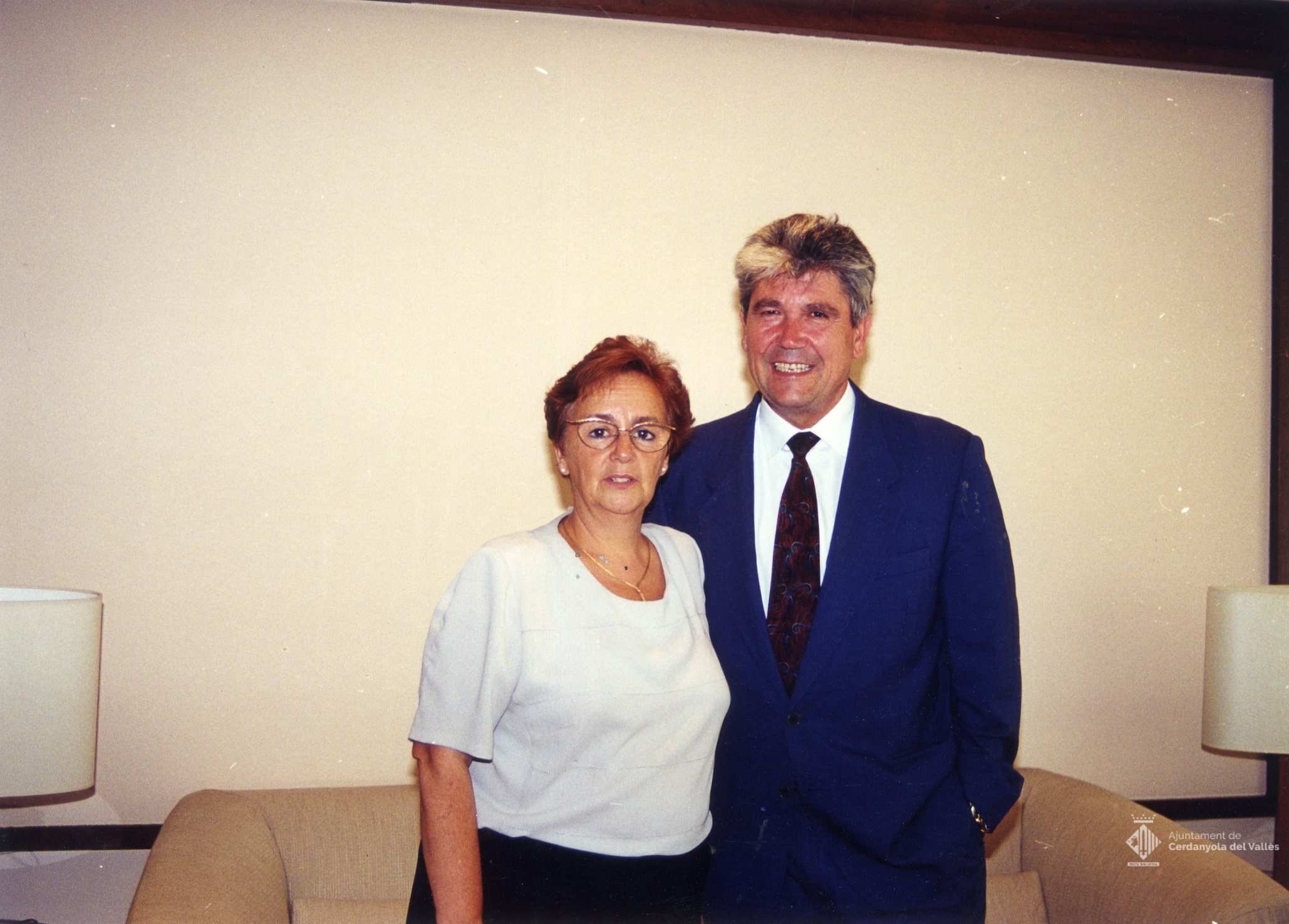 Francisco Garcia Prieto, president de la Federació d'Entitats Culturals Andaluses a Catalunya (FECAC), visita l'Ajuntament de Cerdanyola del Vallès de la mà de l'alcaldessa Cristina Real Masdeu l'agost de 2000