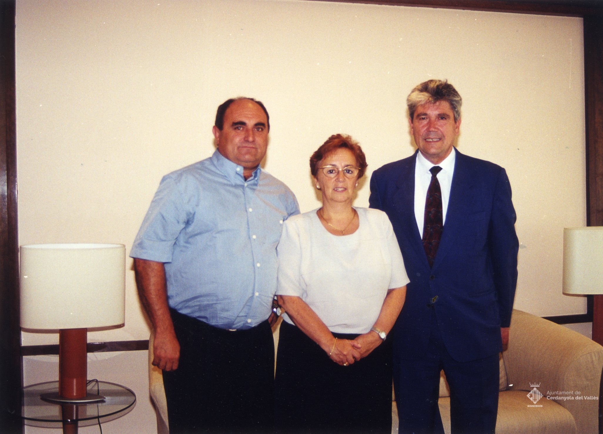 Francisco Garcia Prieto, president de la Federació d'Entitats Culturals Andaluses a Catalunya (FECAC), visita l'Ajuntament de Cerdanyola del Vallès de la mà de l'alcaldessa Cristina Real Masdeu l'agost de 2000