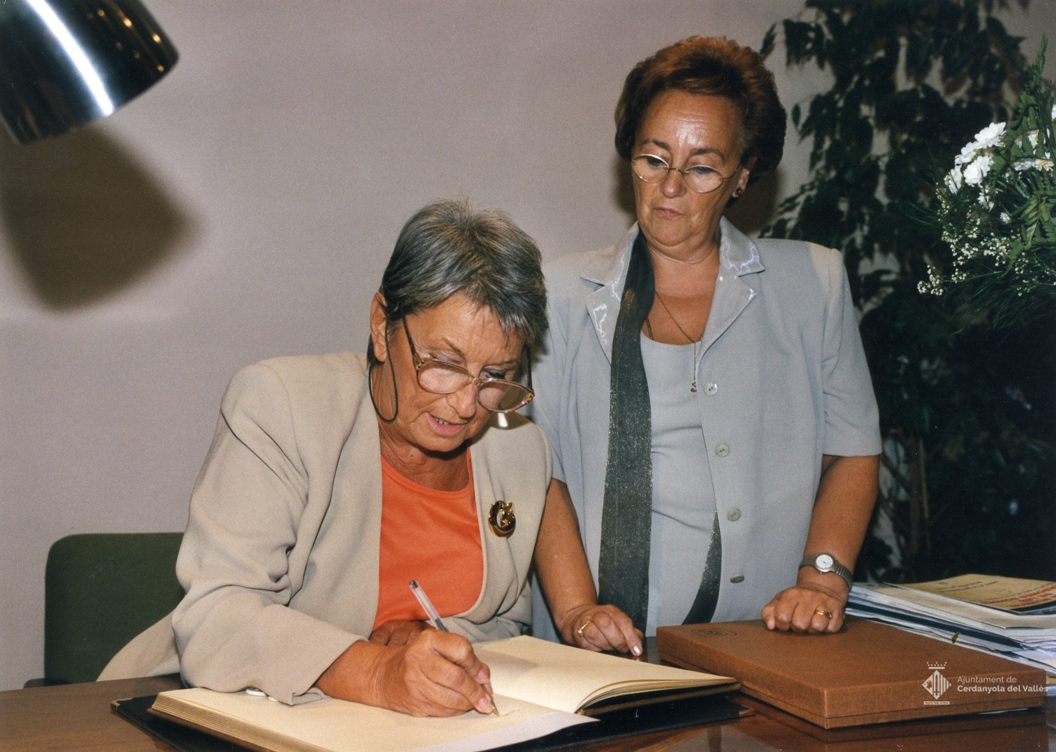 Visita oficial i signatura del Llibre d'Honor de l'Ajuntament de Cerdanyola del Vallès de la Consellera d'Educació Carme Laura Gil i Miró el setembre de 2000