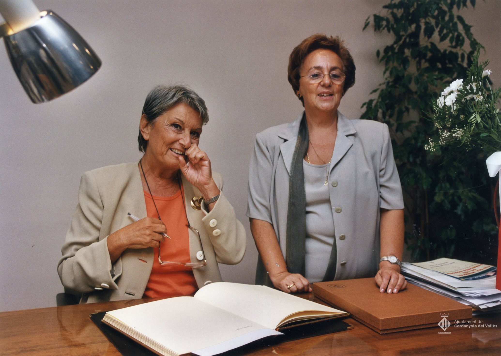 Visita oficial i signatura del Llibre d'Honor de l'Ajuntament de Cerdanyola del Vallès de la Consellera d'Educació Carme Laura Gil i Miró el setembre de 2000