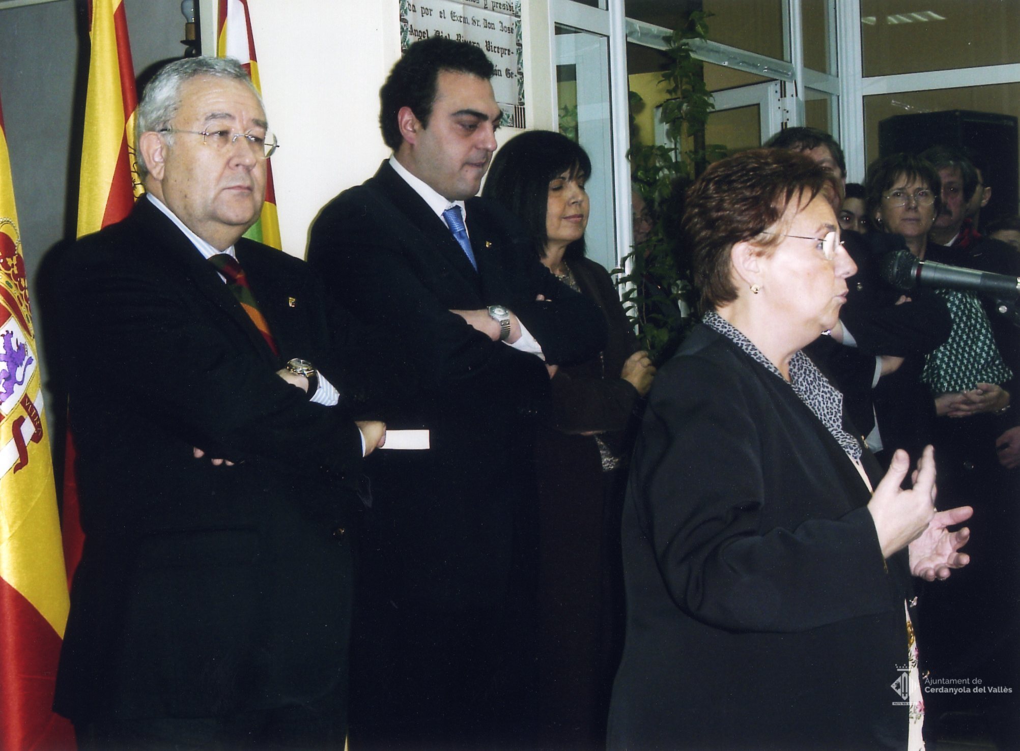 Visita oficial, inauguració de la ""Casa de Aragón de Cerdanyola"" i acte de signatura del Llibre d'Honor de l'Ajuntament de Cerdanyola del Vallès de José Ángel Biel Rivera, en aquell moment vicepresident del Govern d'Aragó entre altres càrrecs, el gener de 2002