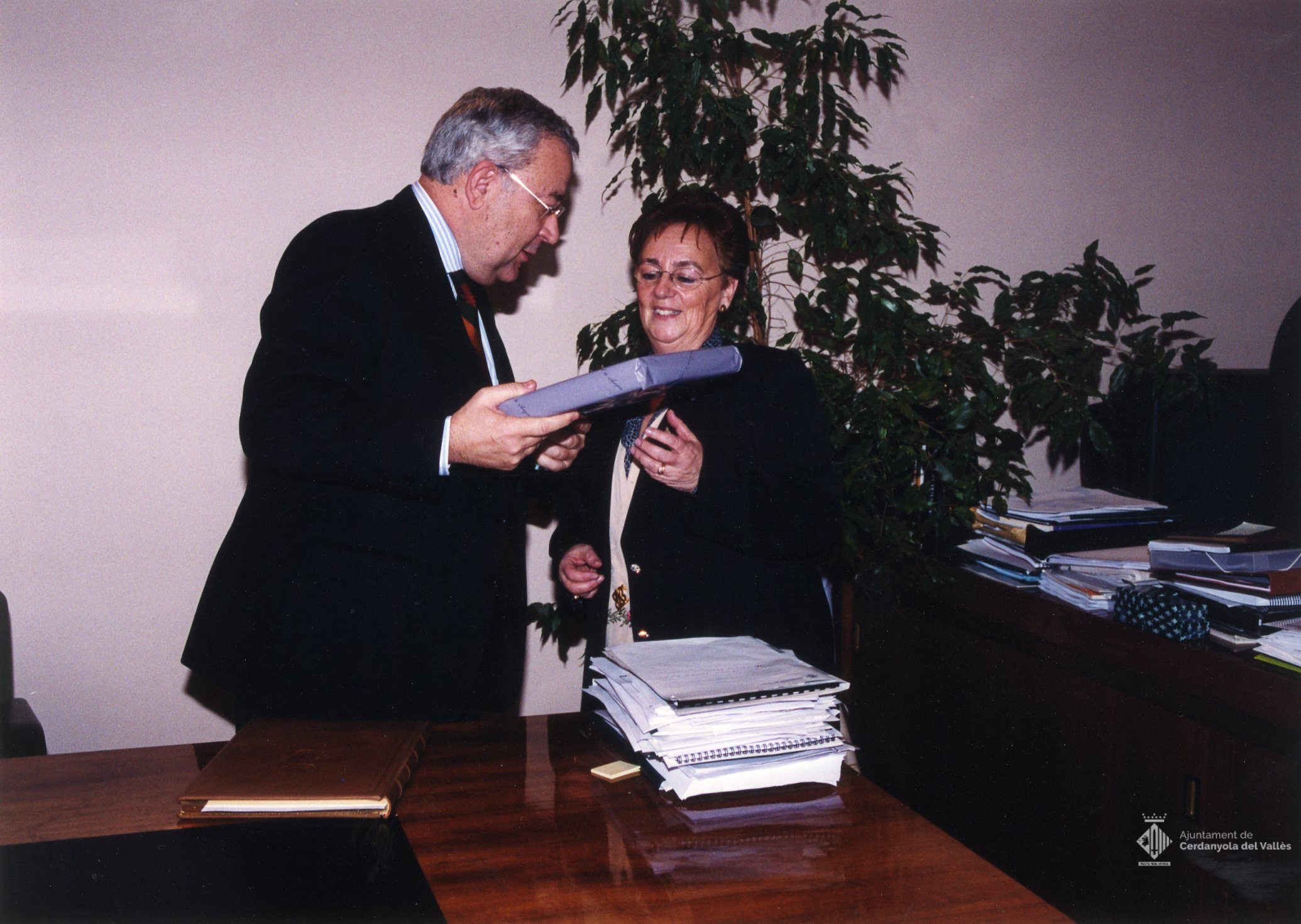 Visita oficial, inauguració de la ""Casa de Aragón de Cerdanyola"" i acte de signatura del Llibre d'Honor de l'Ajuntament de Cerdanyola del Vallès de José Ángel Biel Rivera, en aquell moment vicepresident del Govern d'Aragó entre altres càrrecs, el gener de 2002