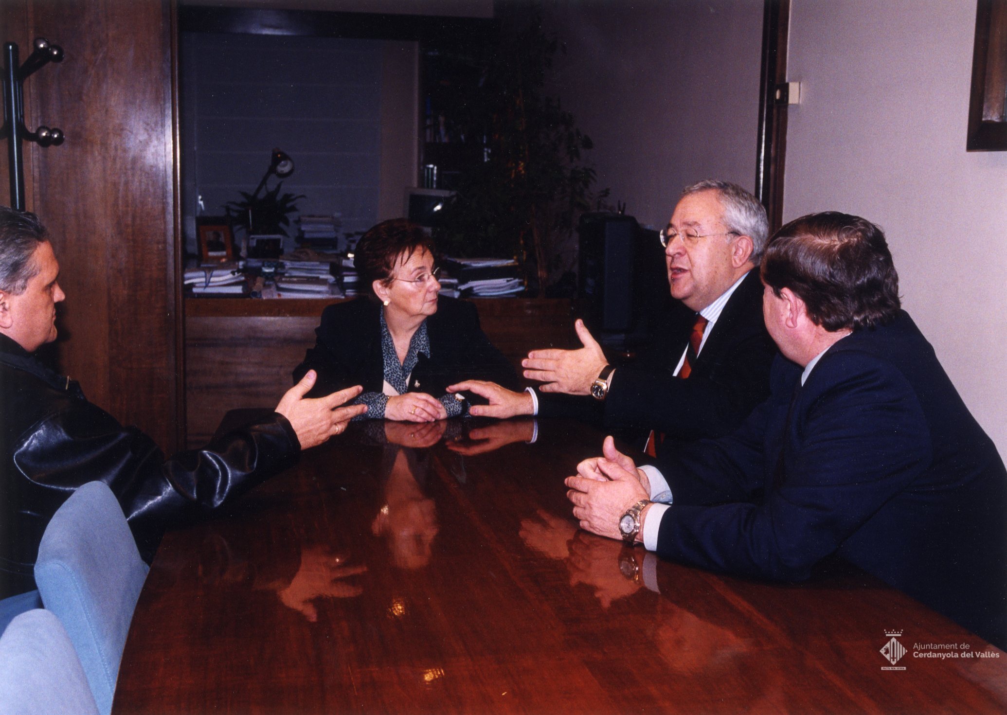 Visita oficial, inauguració de la ""Casa de Aragón de Cerdanyola"" i acte de signatura del Llibre d'Honor de l'Ajuntament de Cerdanyola del Vallès de José Ángel Biel Rivera, en aquell moment vicepresident del Govern d'Aragó entre altres càrrecs, el gener de 2002