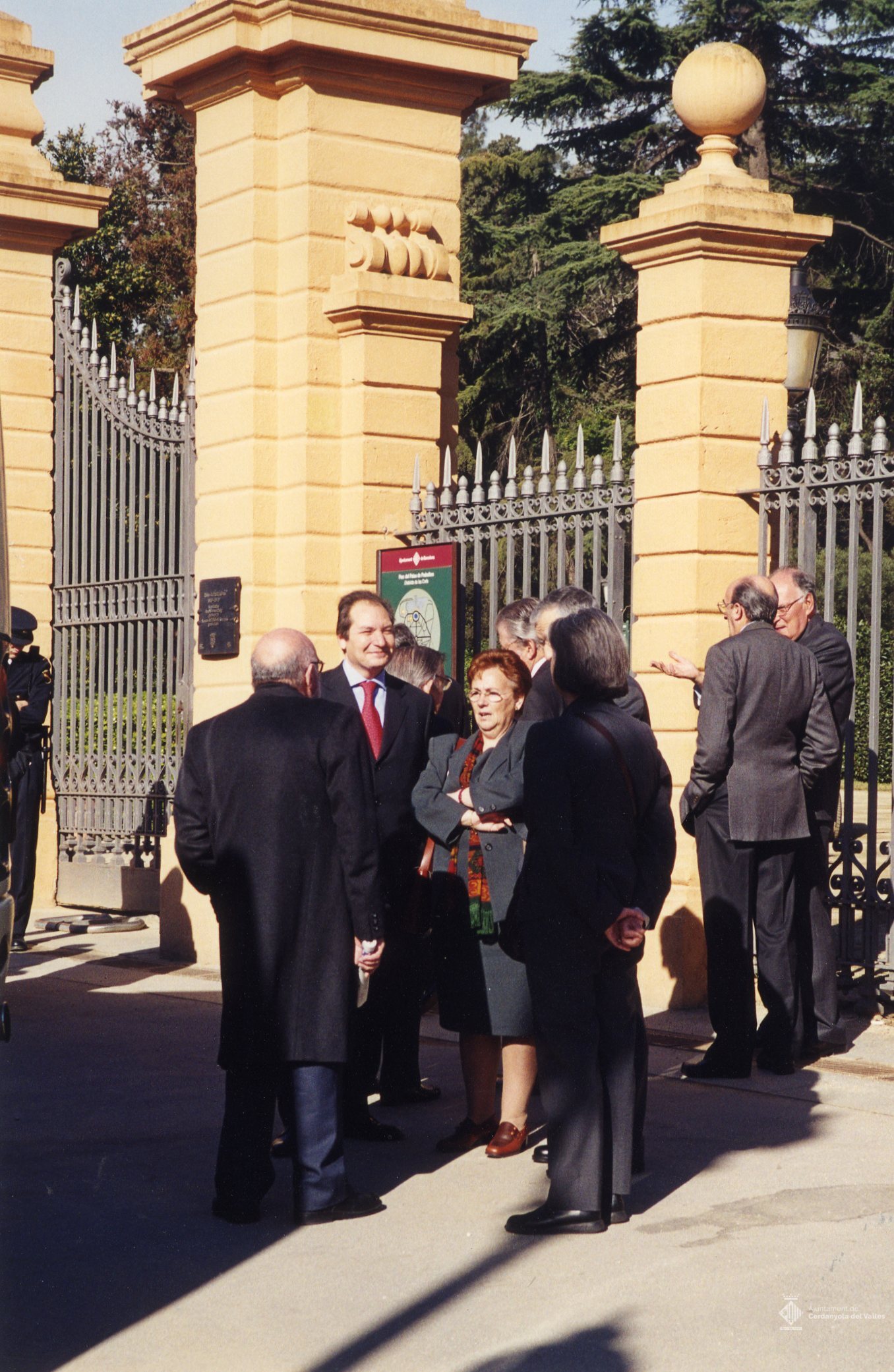 L'alcaldessa de Cerdanyola del Vallès Cristina Real Masdeu assisteix a l'acte de signatura del conveni Sincrotró ALBA a Jardins del Palau Reial de Pedralbes de Barcelona el març de 2002