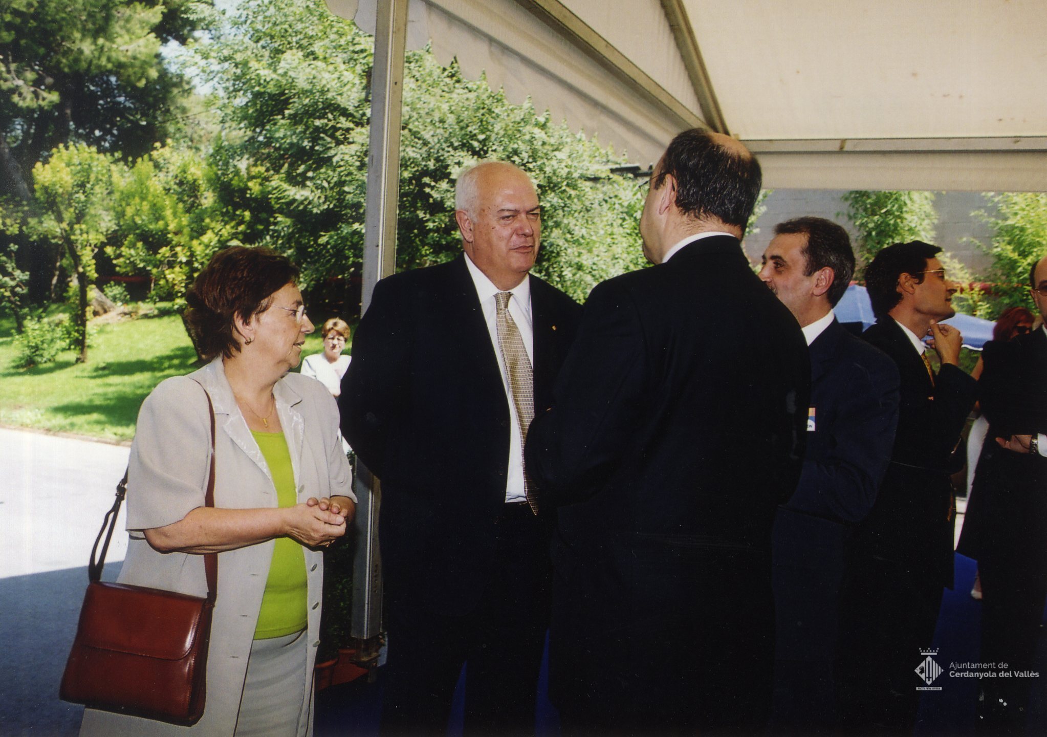 El conseller dIndústria de la Generalitat Antoni Subirà i Claus i l'alcaldessa de Cerdanyola del Vallès Cristina Real Masdeu assisteixen a la inauguració del Centre Europeu de Recanvis de l'empresa EPSON al Parc Tecnològic del Vallès el 12 de juliol de 2002