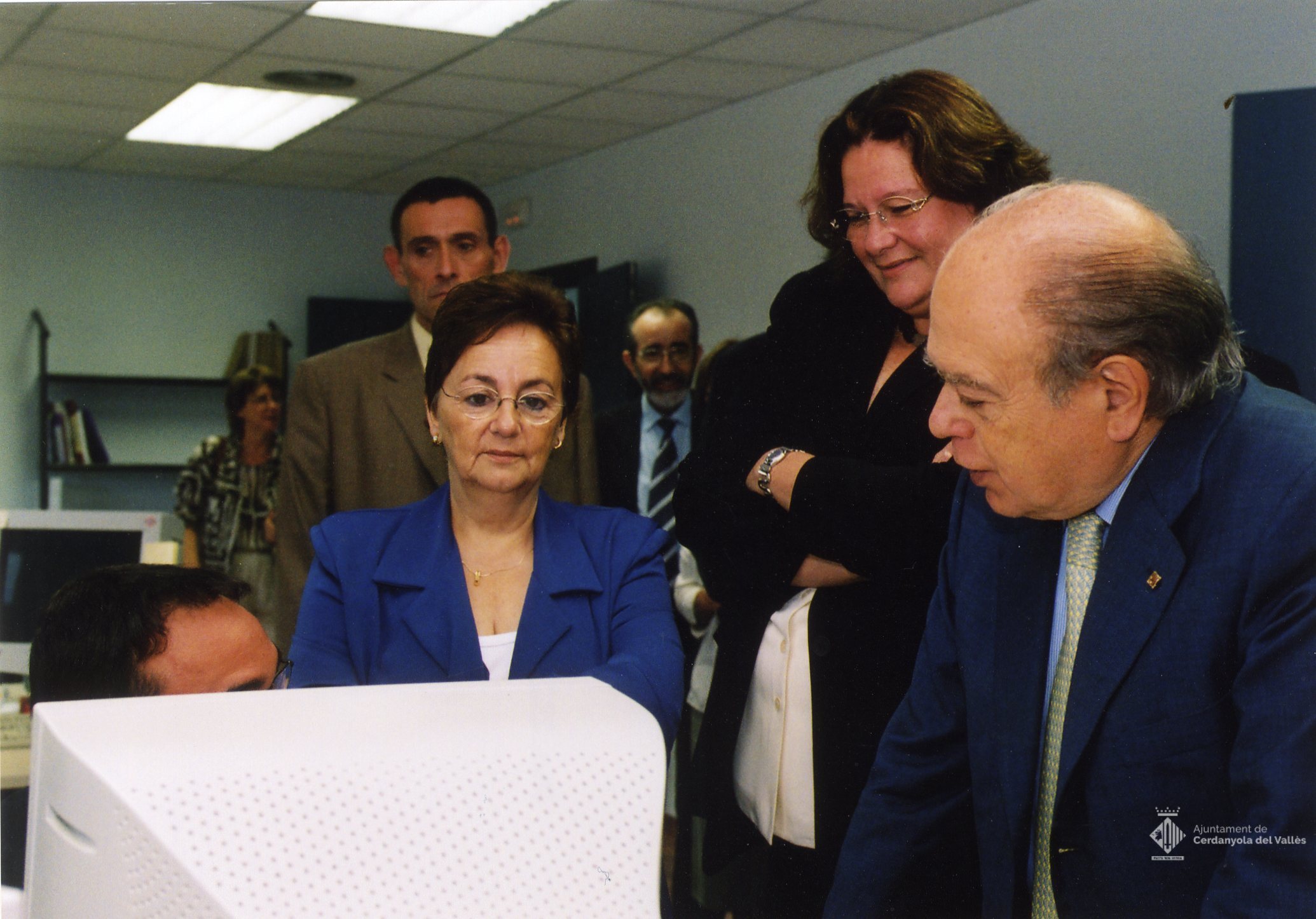 El president de la Generalitat de Catalunya Jordi Pujol i l'alcaldessa de Cerdanyola del Vallès Cristina Real Masdeu visiten les noves instal.lacions de l'empresa Aplicacions d'Informàtica Avançada (AIA) al Parc Tecnològic del Vallès (PTV) el 10 de juliol de 2002