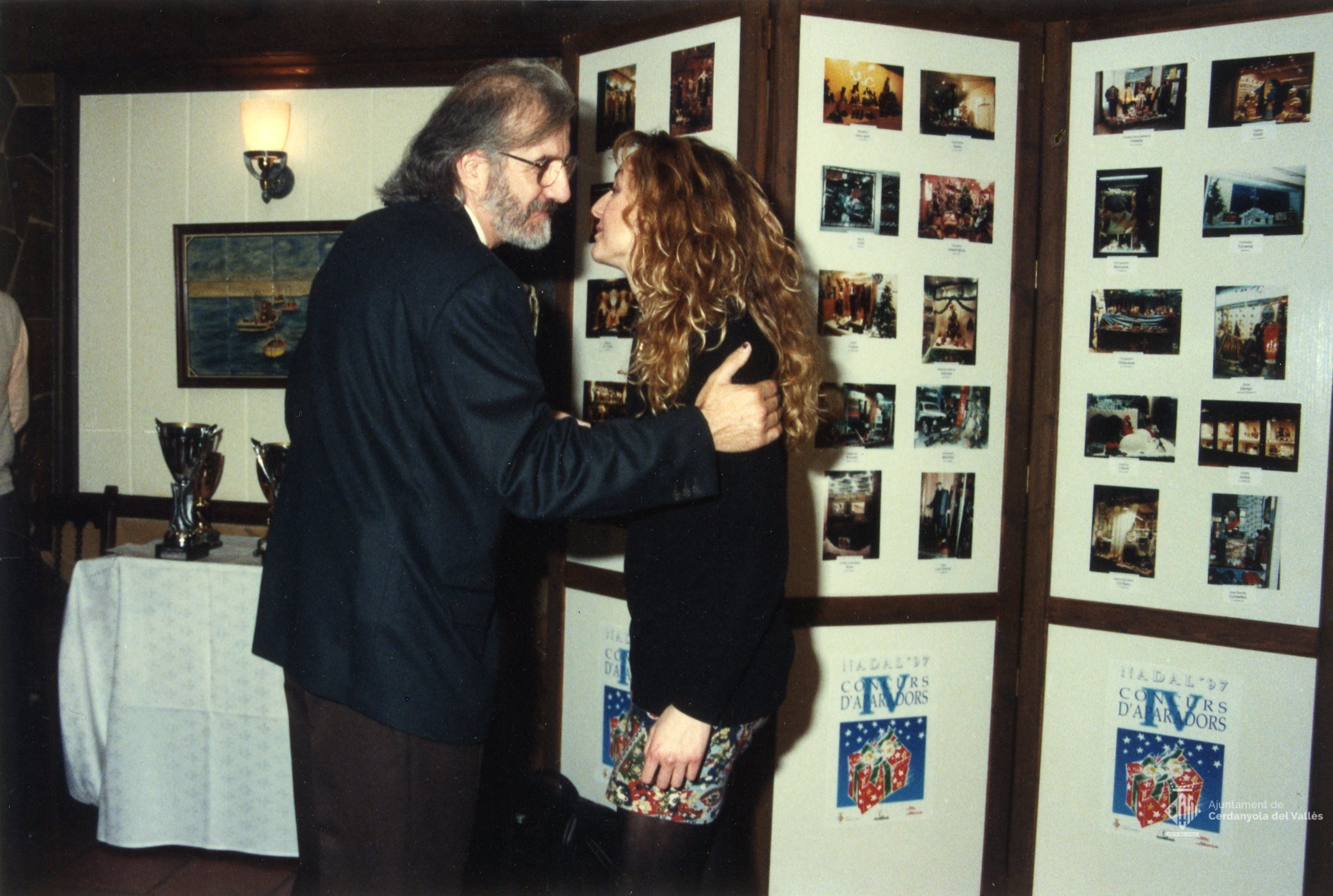 Cerimònia d'entrega de premis del IV Concurs d'Aparadors amb la presència de l'alcaldessa Cristina Real Masdeu i els membres del govern municipal de Cerdanyola del Vallès el gener de 1998