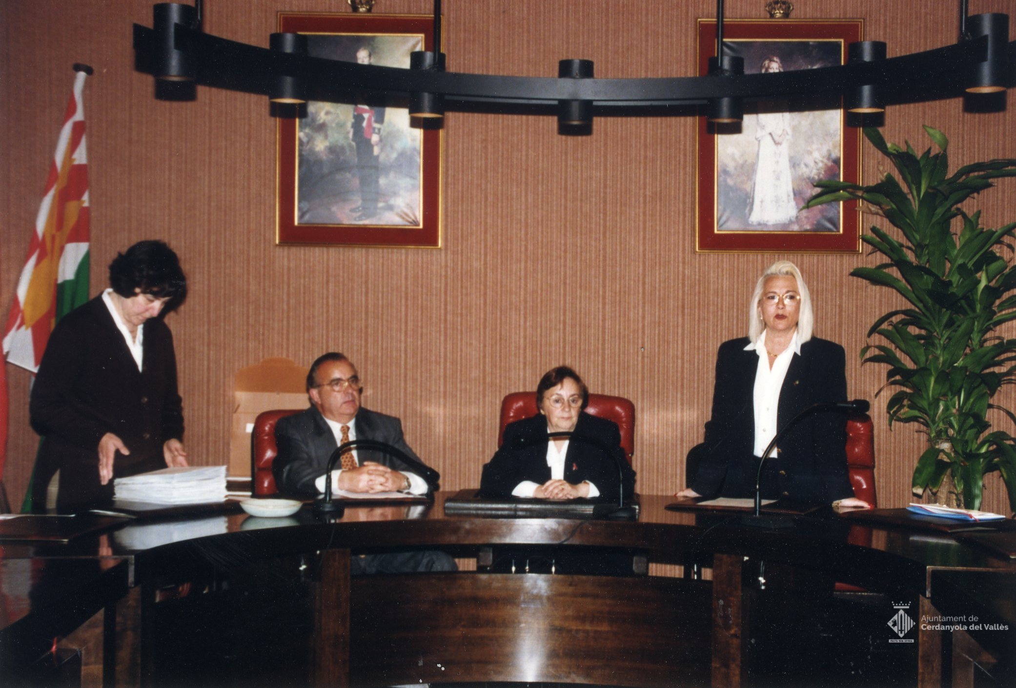 L'alcaldessa Cristina Real Masdeu fa entrega dels premis Àlbum Comerç a la sala del Ple de l'Ajuntament de Cerdanyola del Vallès l'abril de 1998
