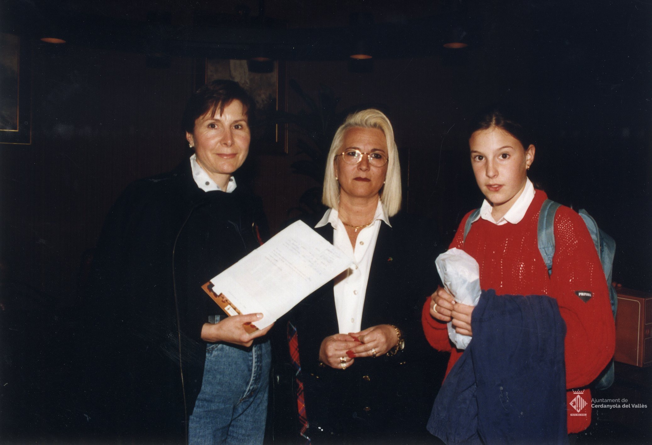 L'alcaldessa Cristina Real Masdeu fa entrega dels premis Àlbum Comerç a la sala del Ple de l'Ajuntament de Cerdanyola del Vallès l'abril de 1998
