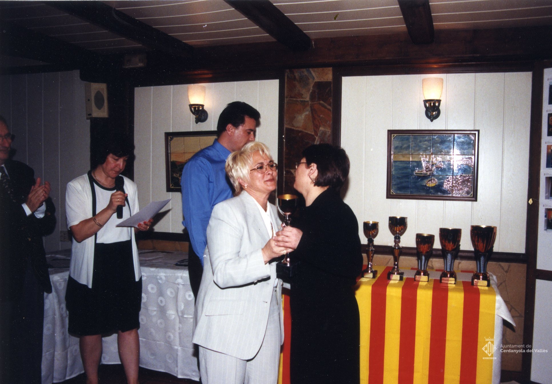 L'alcaldessa de Cerdanyola del Vallès Cristina Real Masdeu fa entrega de premis del 5è Concurs d'Aparadors el maig de 1998