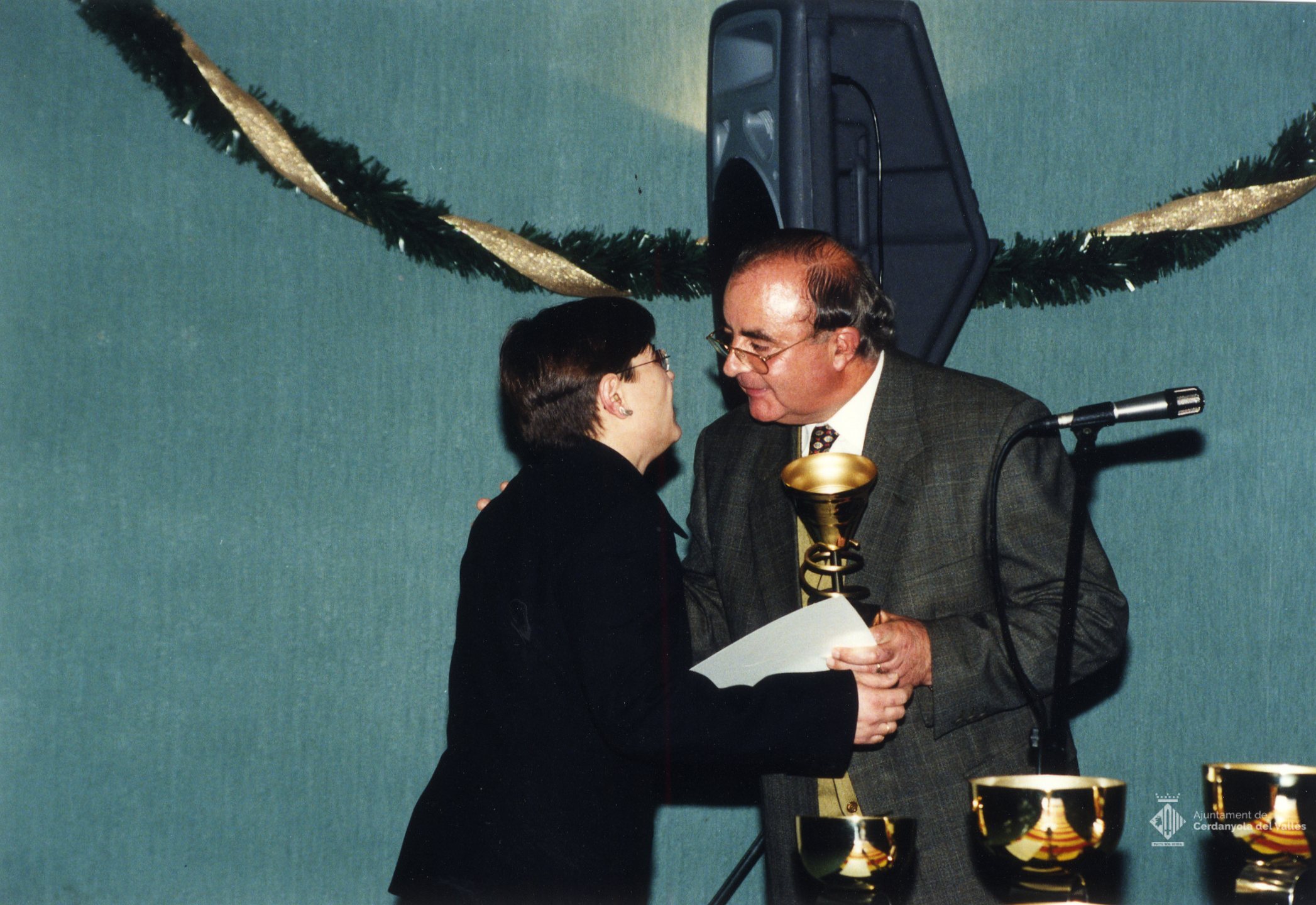 Cerimònia d'entrega de premis del concurs d'aparadors de Cerdanyola del Vallès presidida per l'alcaldessa Cristina Real Masdeu el gener de 1999
