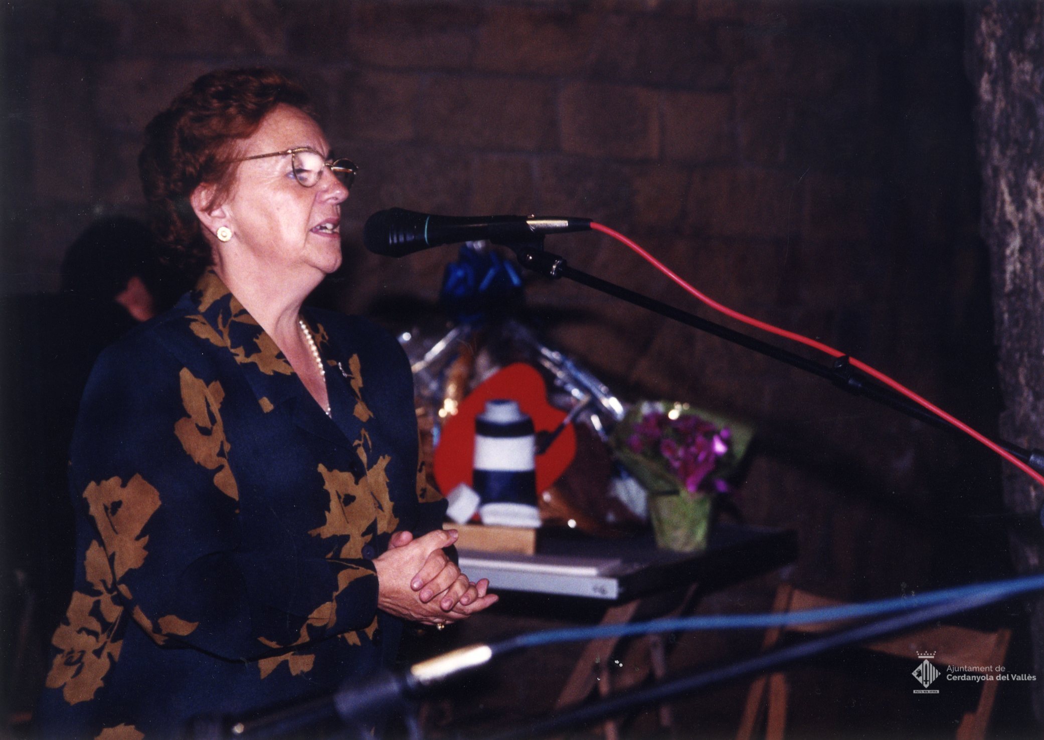 Cerimònia d'entrega dels premis Aparadors de Cerdanyola del Vallès presidida per l'alcaldessa Cristina Real Masdeu el juny de 2000