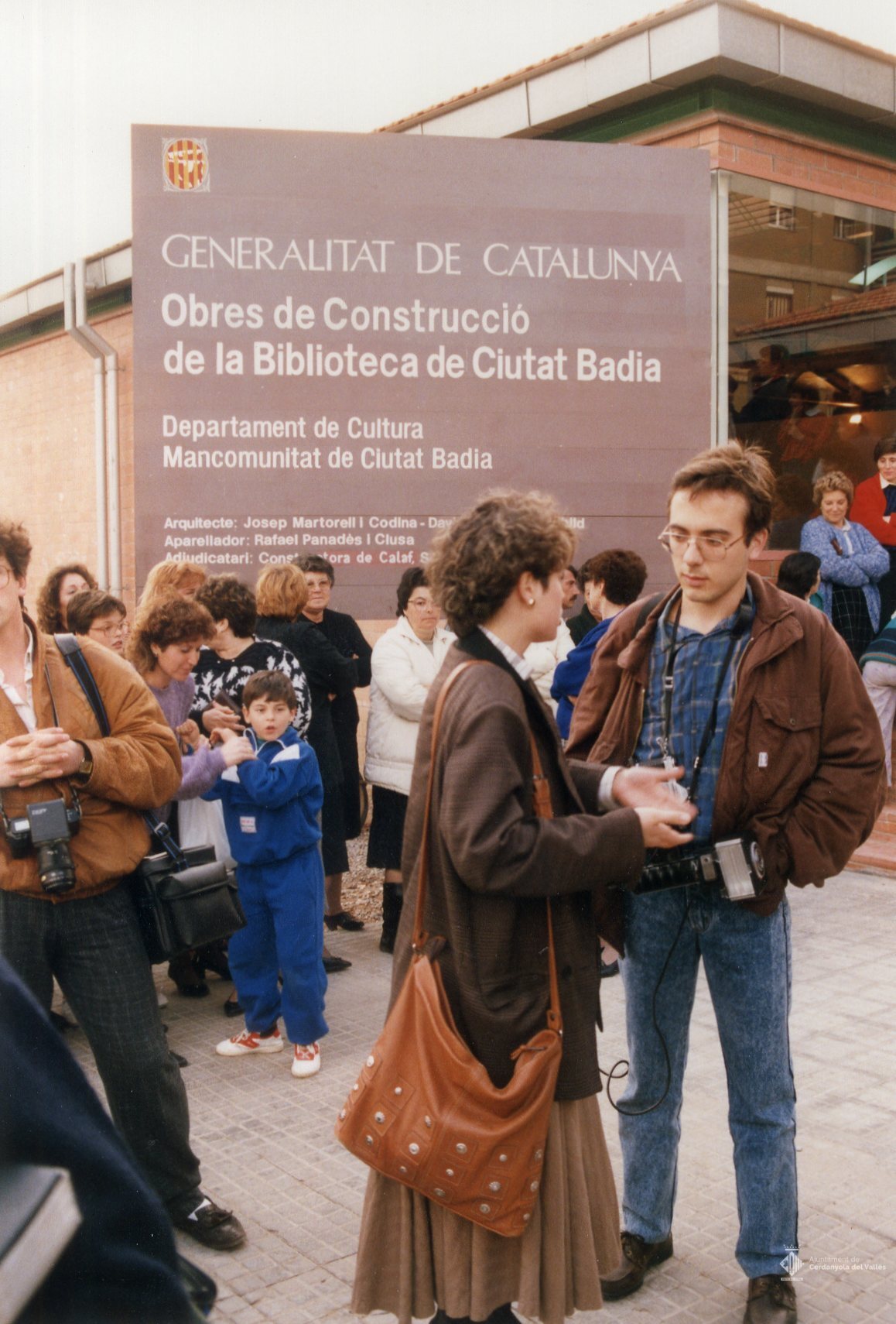 Inauguració de la biblioteca de Badia del Vallès amb la presència del president de la Generalitat de Catalunya, Jordi Pujol i Soley, i l'alcalde de Cerdanyola del Vallès, Celestino Sánchez González, el 1989