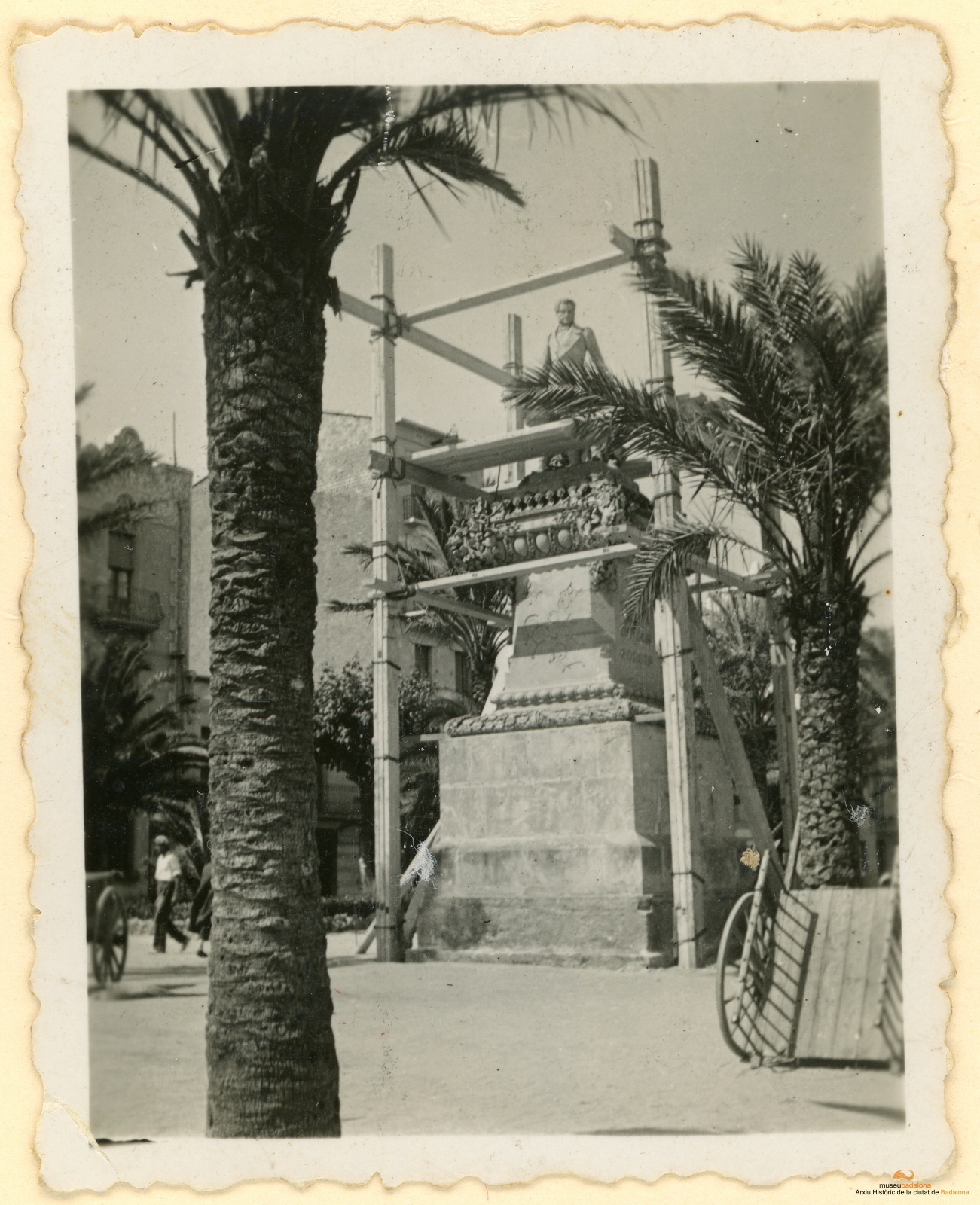 Desmuntatge monument a Roca i Pi situat a la part central de la Rambla