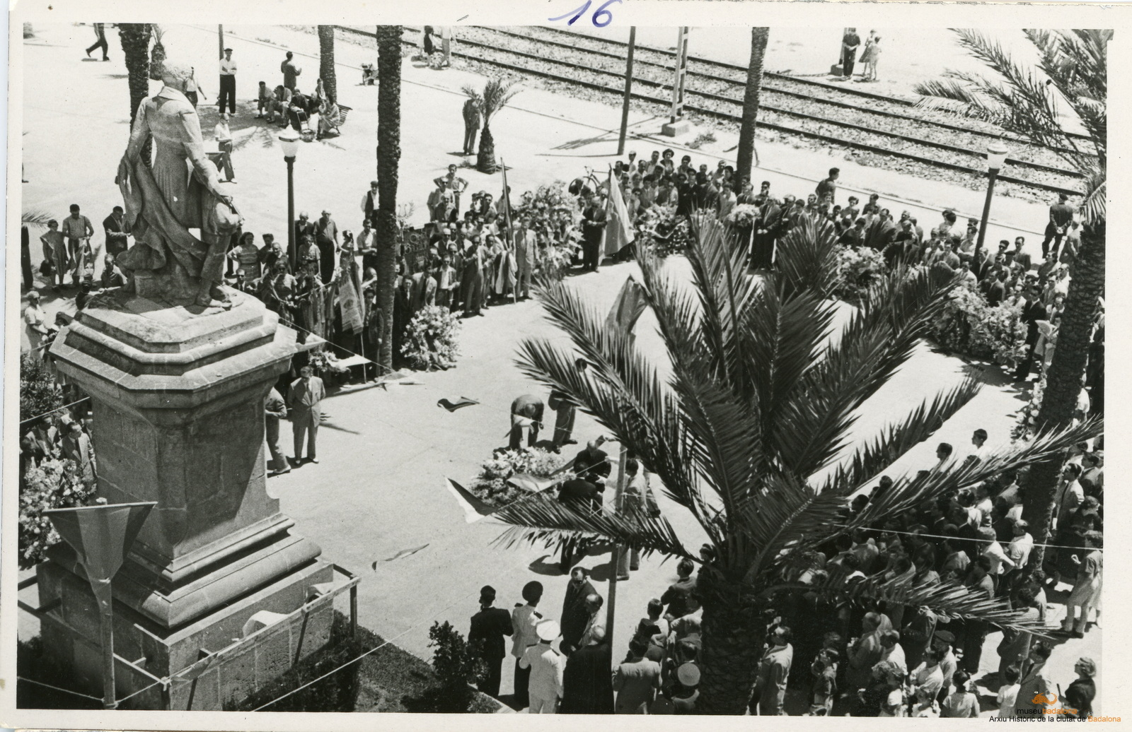Commemoració centenari de la mort de Vicenç Roca i Pi. Acte a la Rambla davant escultura