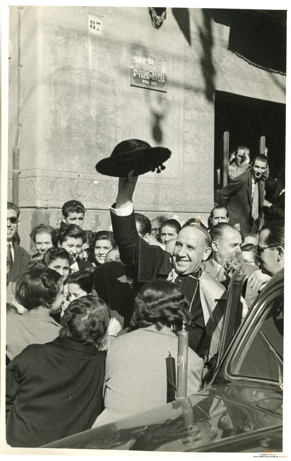 Rebuda a la plaça de la Vila, davant l'edifici de l'Ajuntament, de l'Arquebisbe Dr. Modrego que retornava de Roma