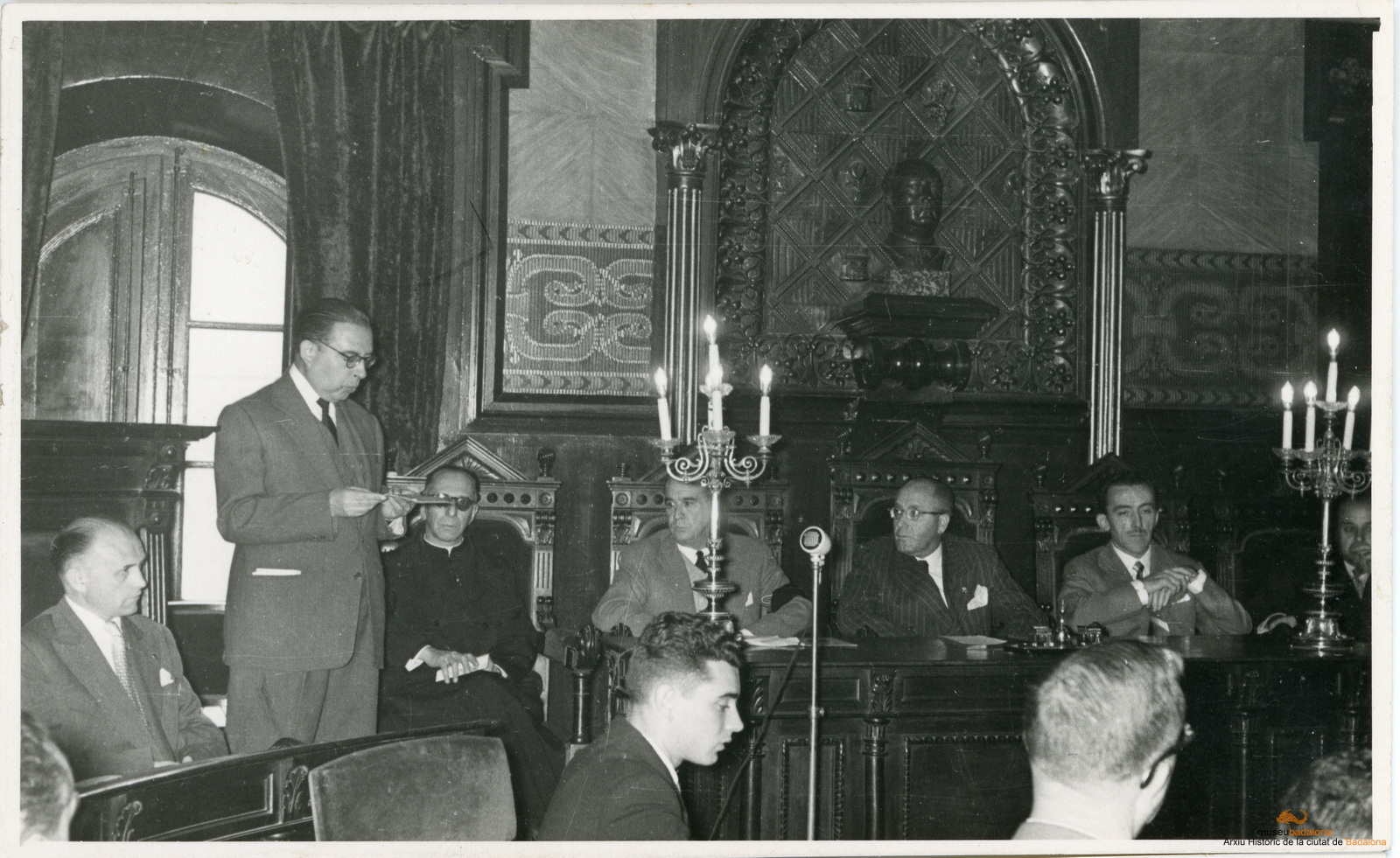 Reunió de la comissaria provincial d'excavacions. Acte al saló de plens. Presidenix Julio Martínez Santaolalla