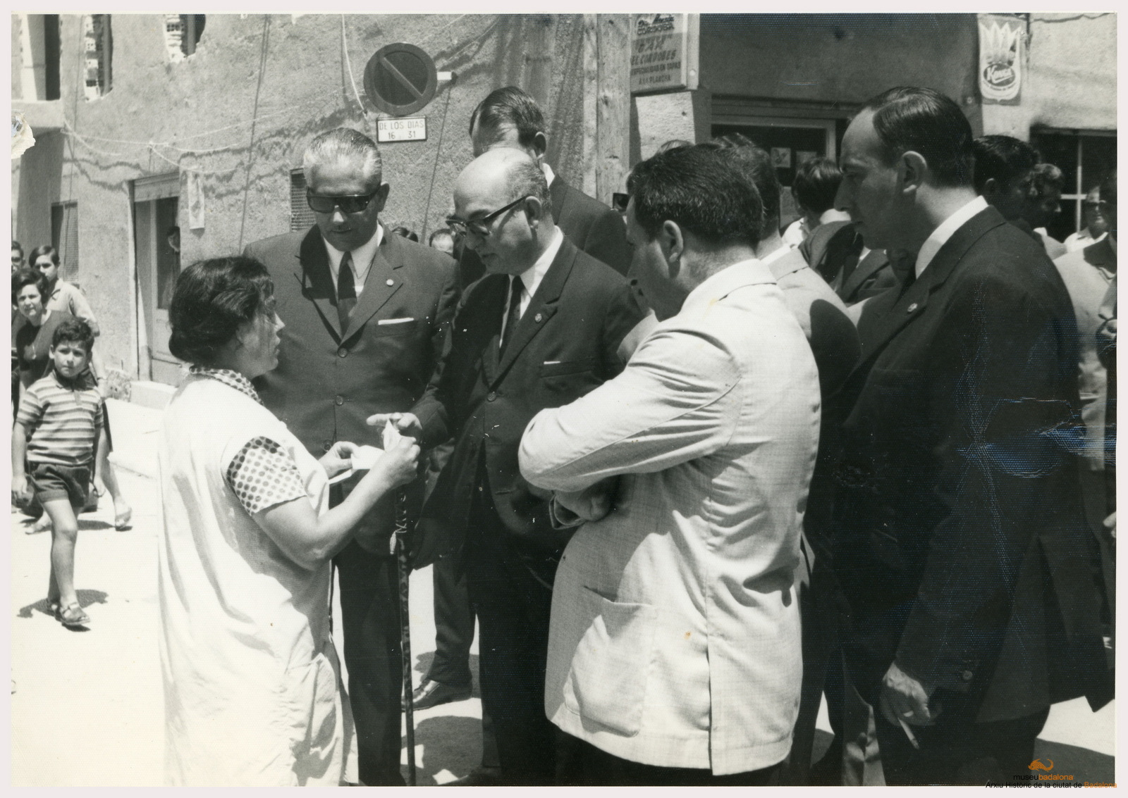 L'alcalde Felipe Antoja i altres membres del consistori parlant amb una senyora al carrer (davant el Bar el Cordobés)