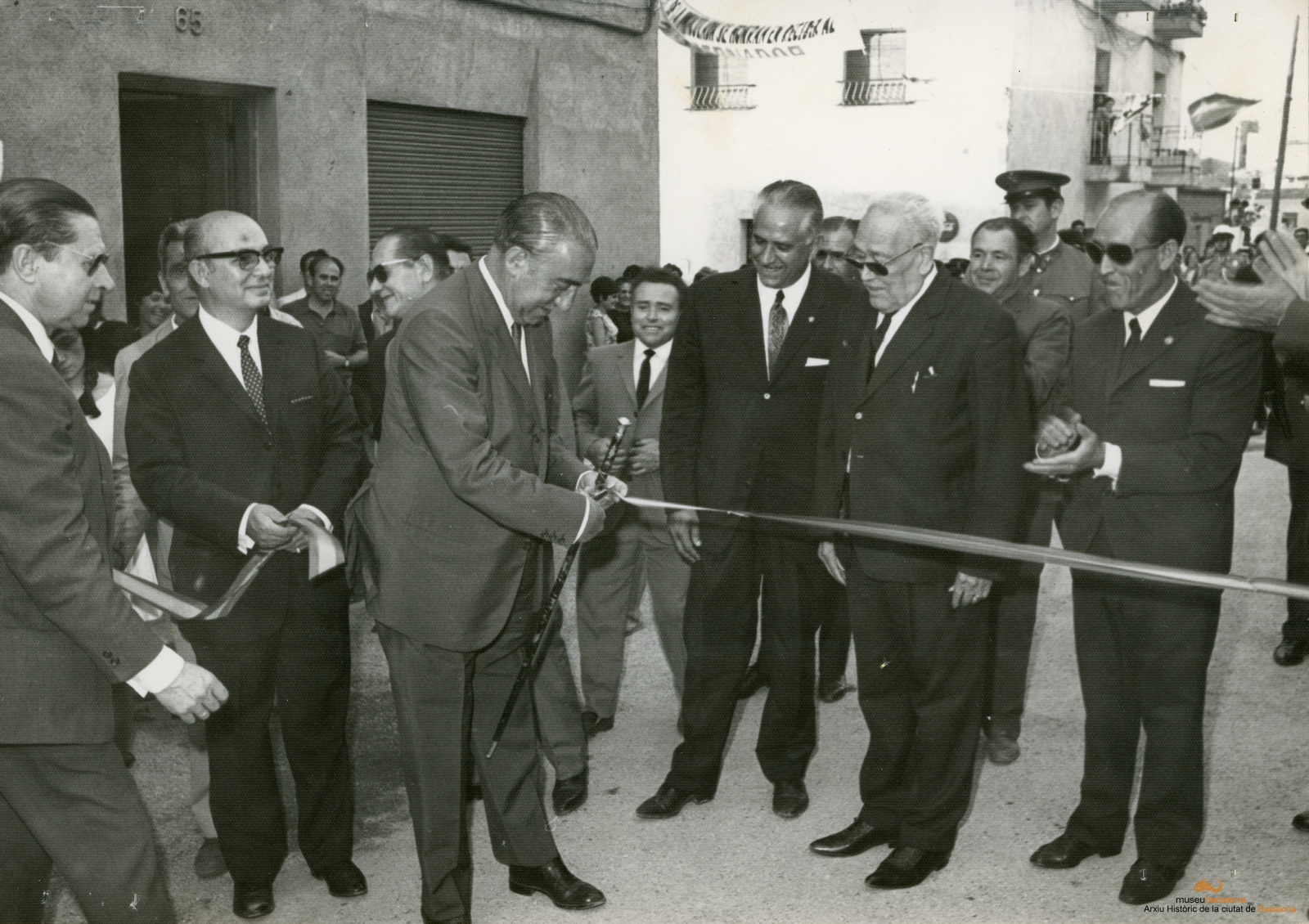 El governador civil Garicano Goñi amb diversos membres del consistori, inaugura l'asfalta d'un carrer al barri de La Pau (aleshores barri La Inmaculada)
