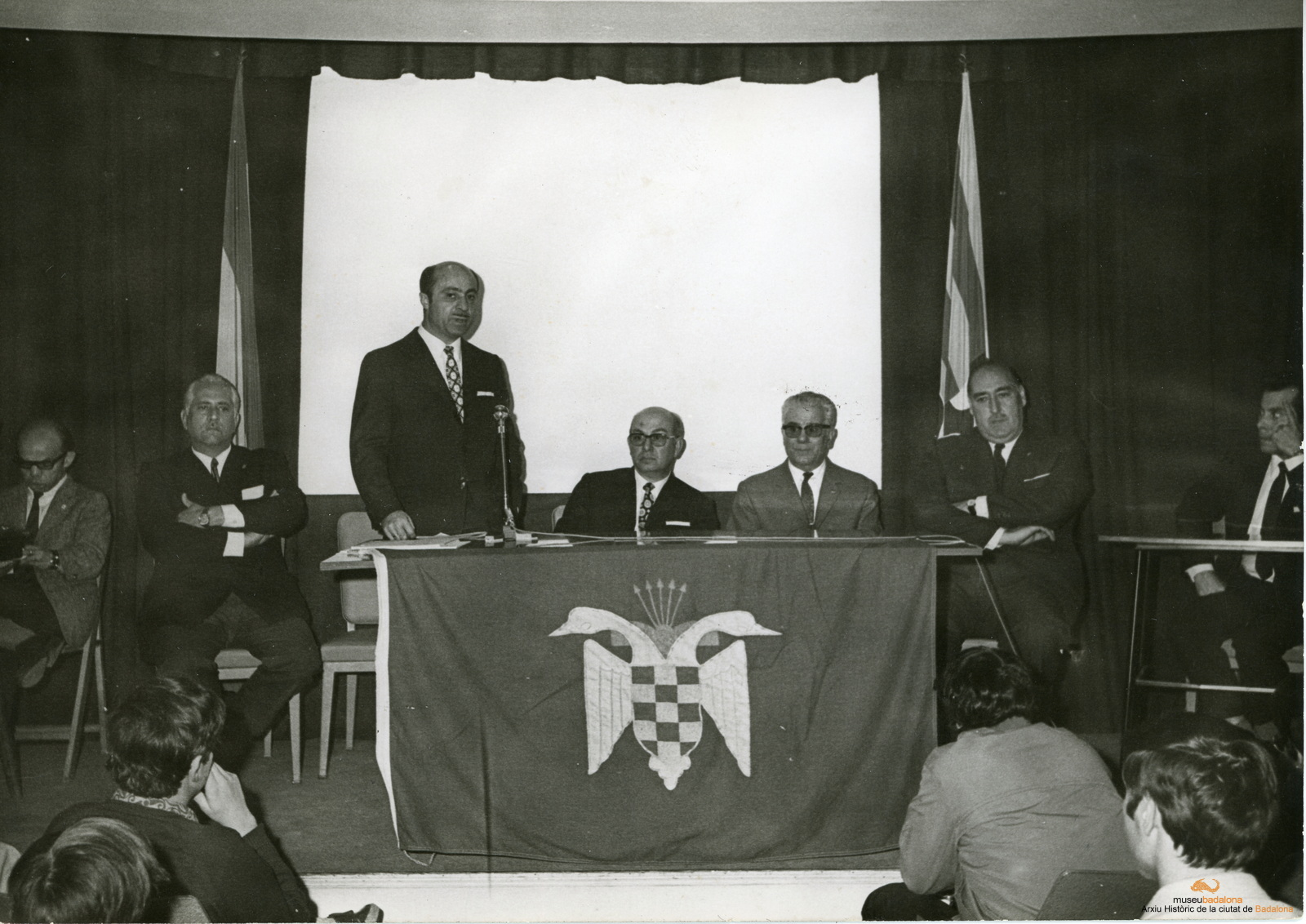 L'alcalde Felipe Antoja,amb Alfonso Ramos, conseller del Movimiento i José M. Prieto, també del Movimiento, al Museu durant l'entrega de premis per la Semana de la Juventud