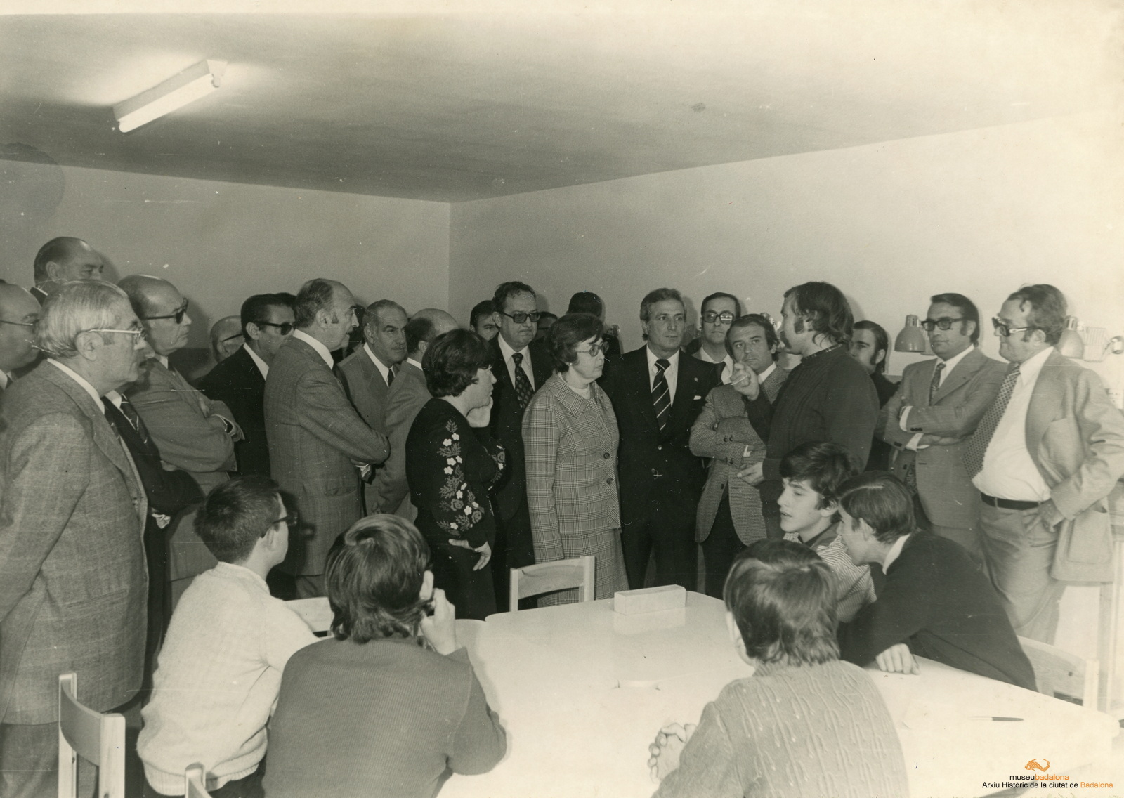 Diverses persones a l'interior d'una aula quan es va inaugurar l'escola Llevant, escola especial per a deficients psíquics