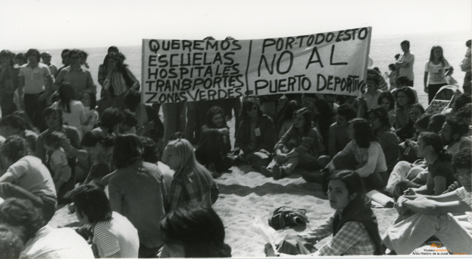 Gent a la zona de la platja, participant a la campanya NO AL PORT ESPORTIU