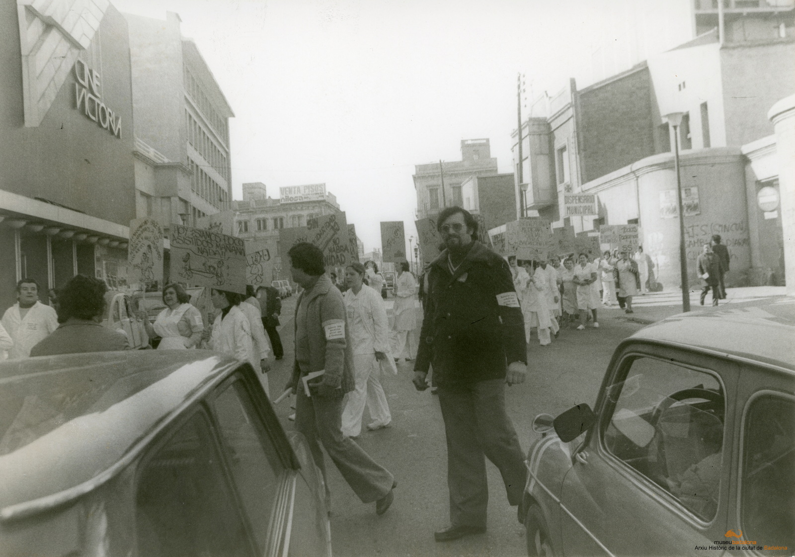 Manifestació de treballadors de l'Hospital de Badalona davant les instal·laciopns de l'hospital al carrer de Via Augusta