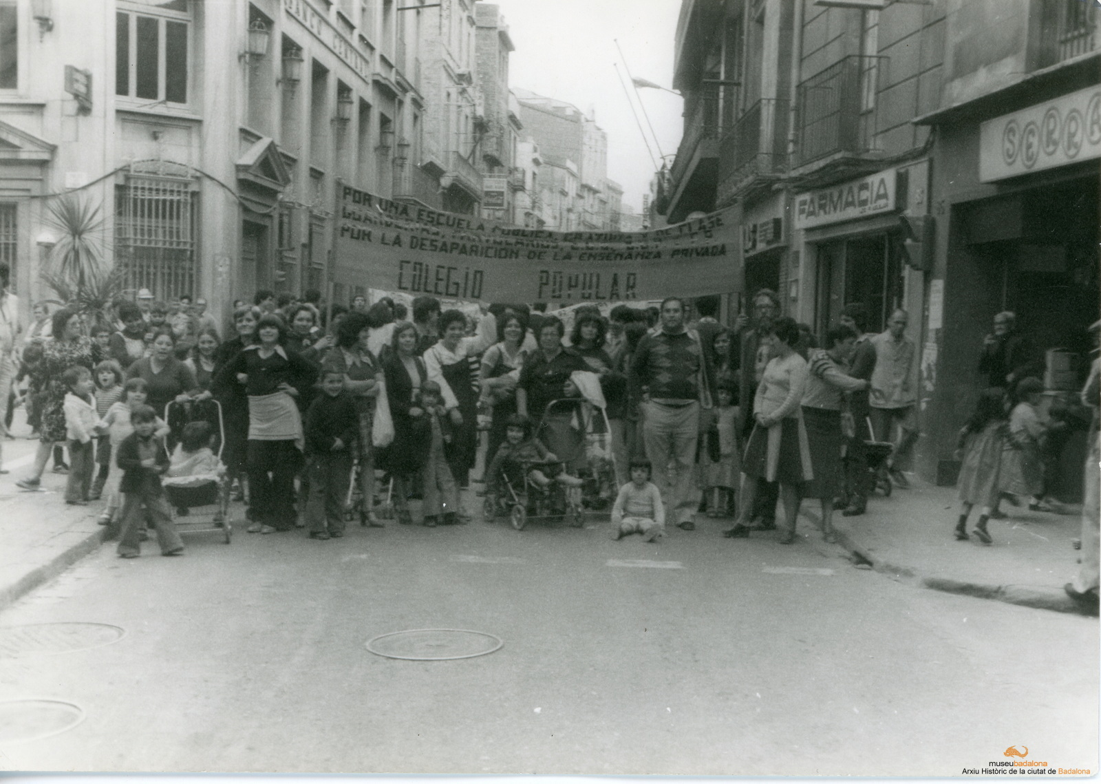 Gent manifestant-se al carrer reclamant colegis populars asamblearis, davant la plaça de la Vila