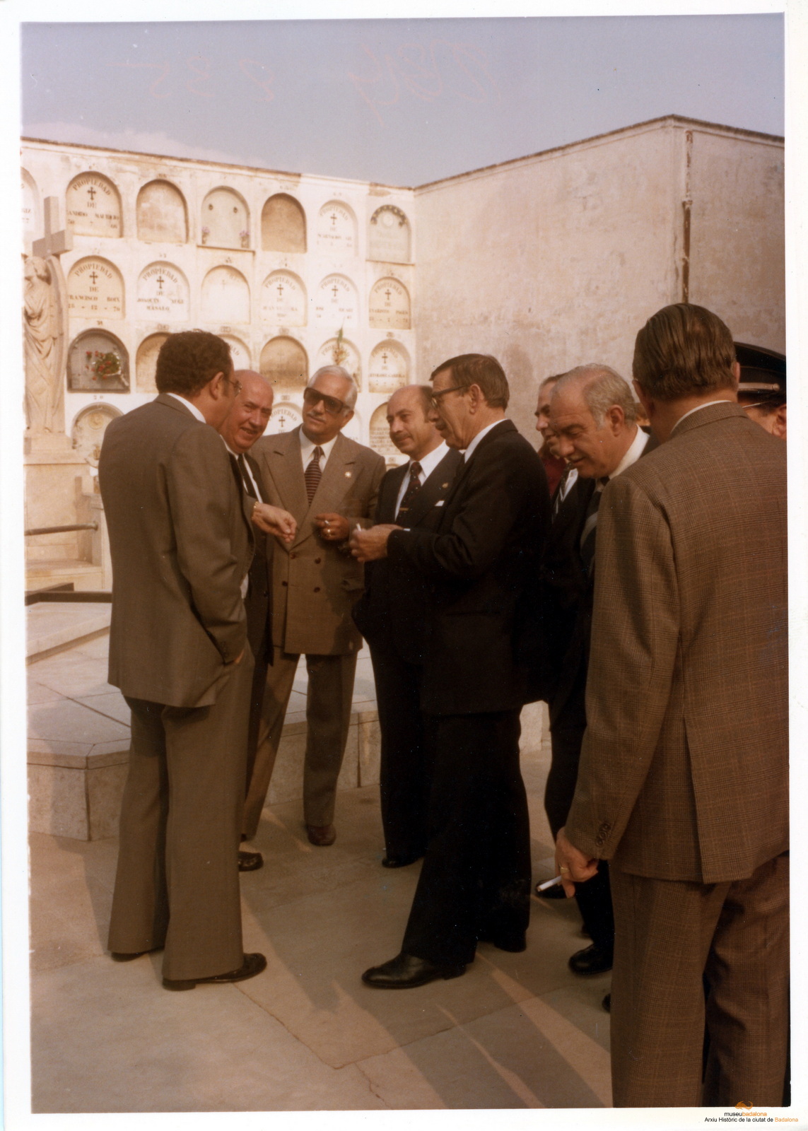L'alcalde Ramos i altres regidors, parlant al Cementiri de Sant Crist un Dia de Difunts