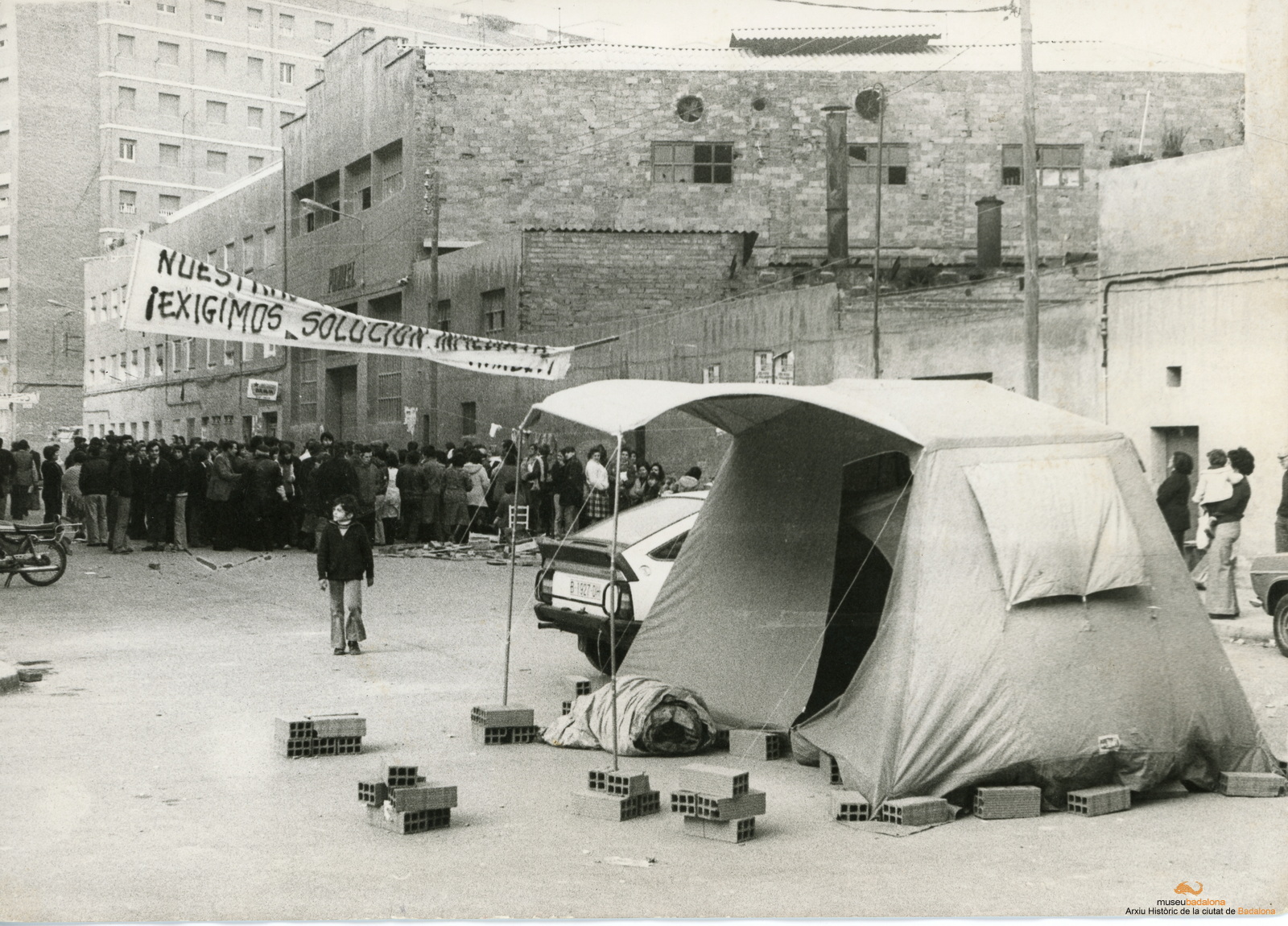Gent al carrer pel conflicte amb Immobiliària La Salut pels pisos del carrer Sagrada Família, al barri de Llefià