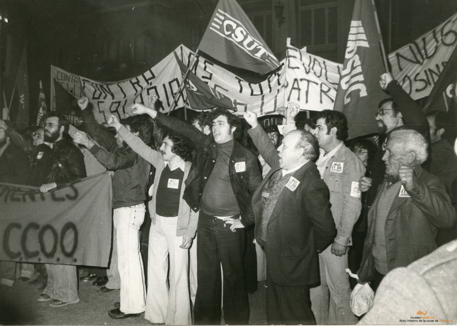 Gent manifestant-se a la plaça de la Vila sota el lema No a los expedientes de crisi convocada per UGT, CCOO i CSUT