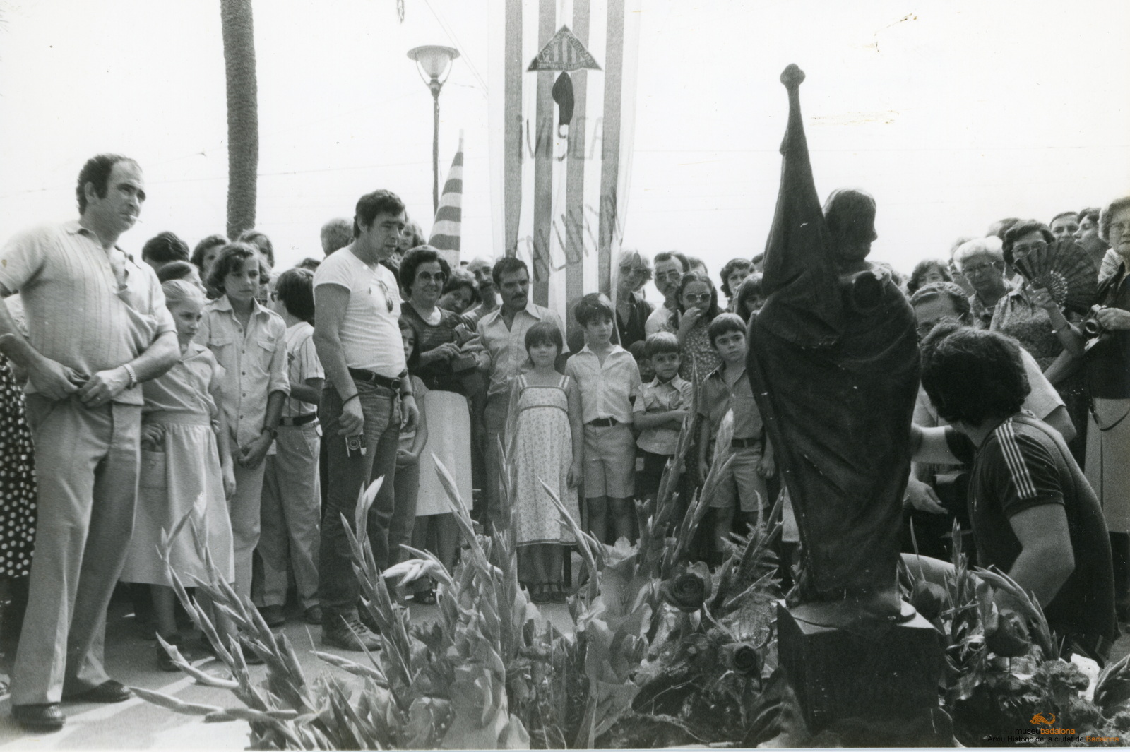 Grup de gent a la Rambla, per la celebració de l'acte en commemoració de l'11 de setembre.