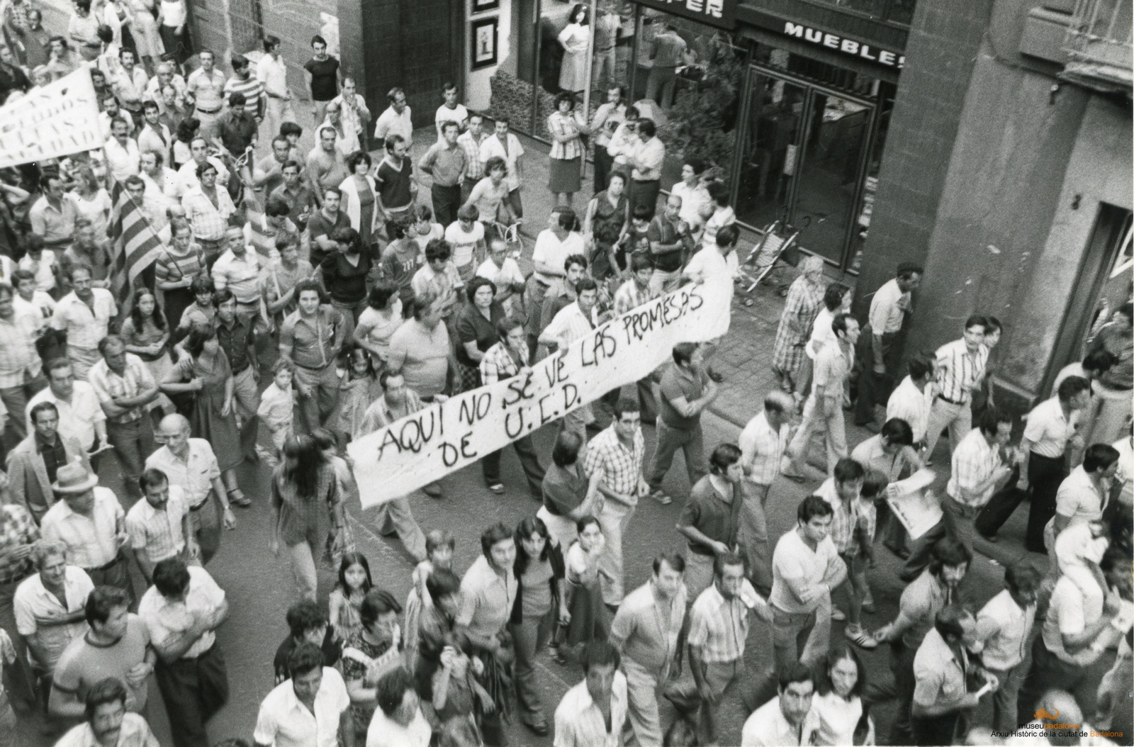Gent al carrer de la Creu en manifestació reclamant escoles públiques.