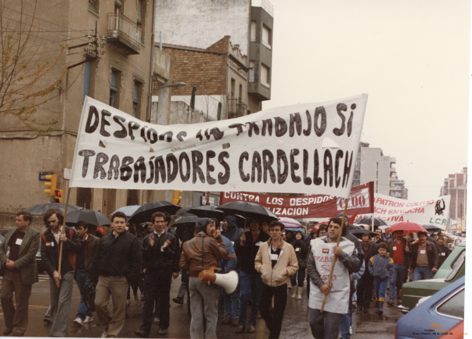 Gent manifestant-se amb pancartes a Pep Ventura contra l'atur i els acomiadaments de l'empresa Cardellach