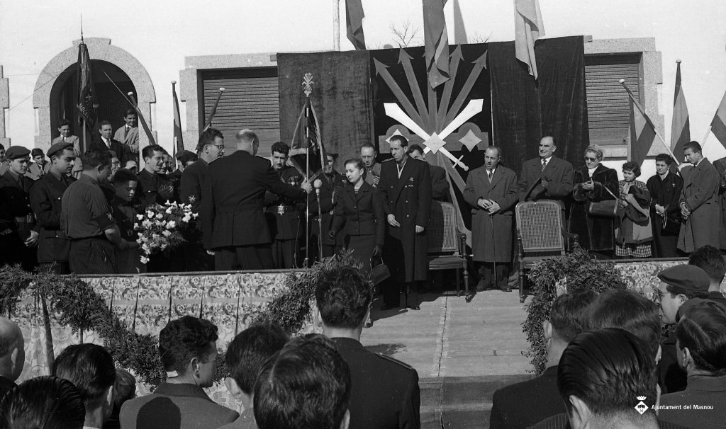 Falange. Maria Dolors Salazar Cortada, filla de l'alcalde Salazar, amb autoritats.